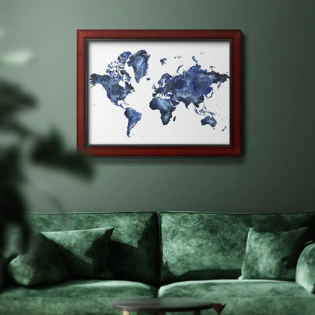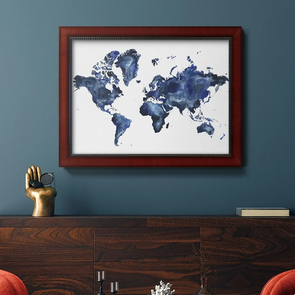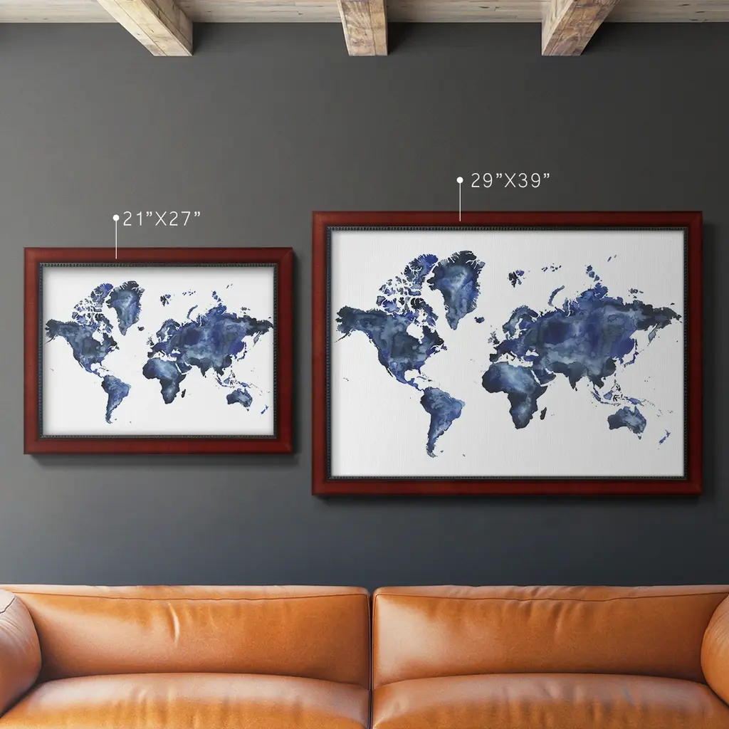 Water World I Premium Framed Canvas- Ready to Hang A Premium Framed Canvas created to last. Framed in distressed wood and available in an array of sizes and colors Featuring a beveled a solid wood stretcher bar, each piece comes ready to hand 3 SIZES AVAILABLE 16''X20'' - Overall Size 18'X27'' - Overall Size 24''x36'' - Overall Size Each piece is made to order. Each piece comes with hanging hardware. Made in the USA Ready to Hang Giclee Paper Print Acrylic Glass Beveled Matt Board