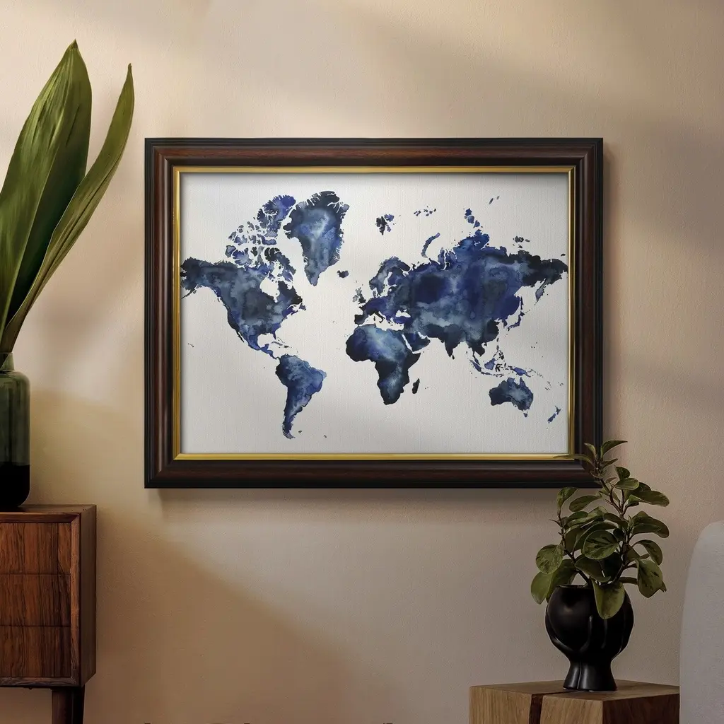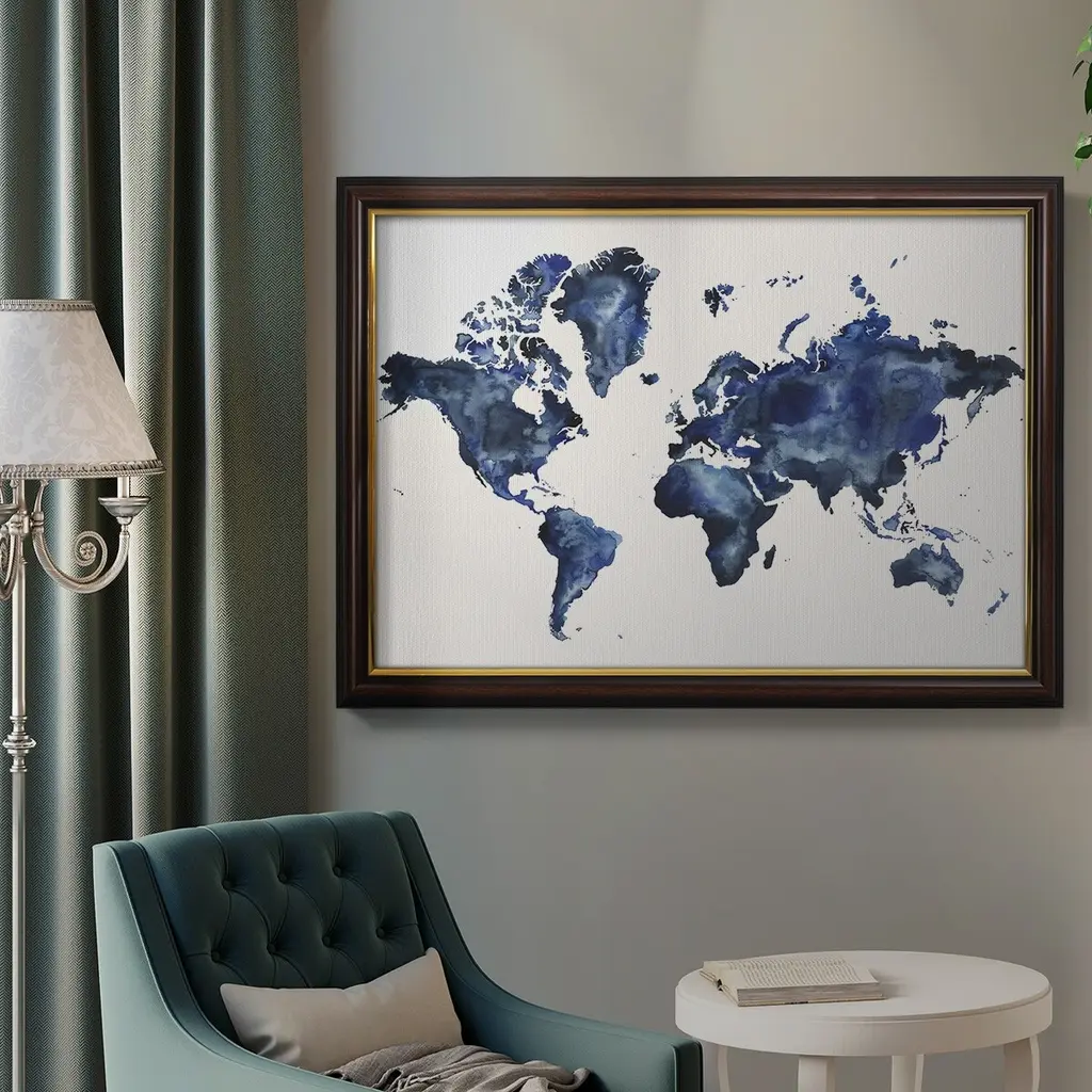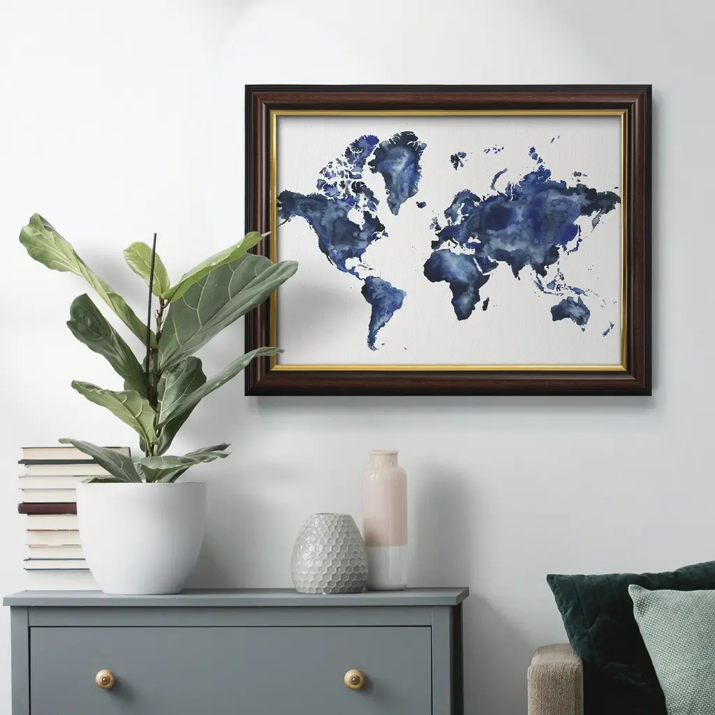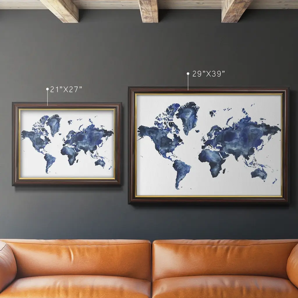 Water World I Premium Framed Canvas- Ready to Hang A Premium Framed Canvas created to last. Framed in distressed wood and available in an array of sizes and colors Featuring a beveled a solid wood stretcher bar, each piece comes ready to hand 3 SIZES AVAILABLE 16''X20'' - Overall Size 18'X27'' - Overall Size 24''x36'' - Overall Size Each piece is made to order. Each piece comes with hanging hardware. Made in the USA Ready to Hang Giclee Paper Print Acrylic Glass Beveled Matt Board