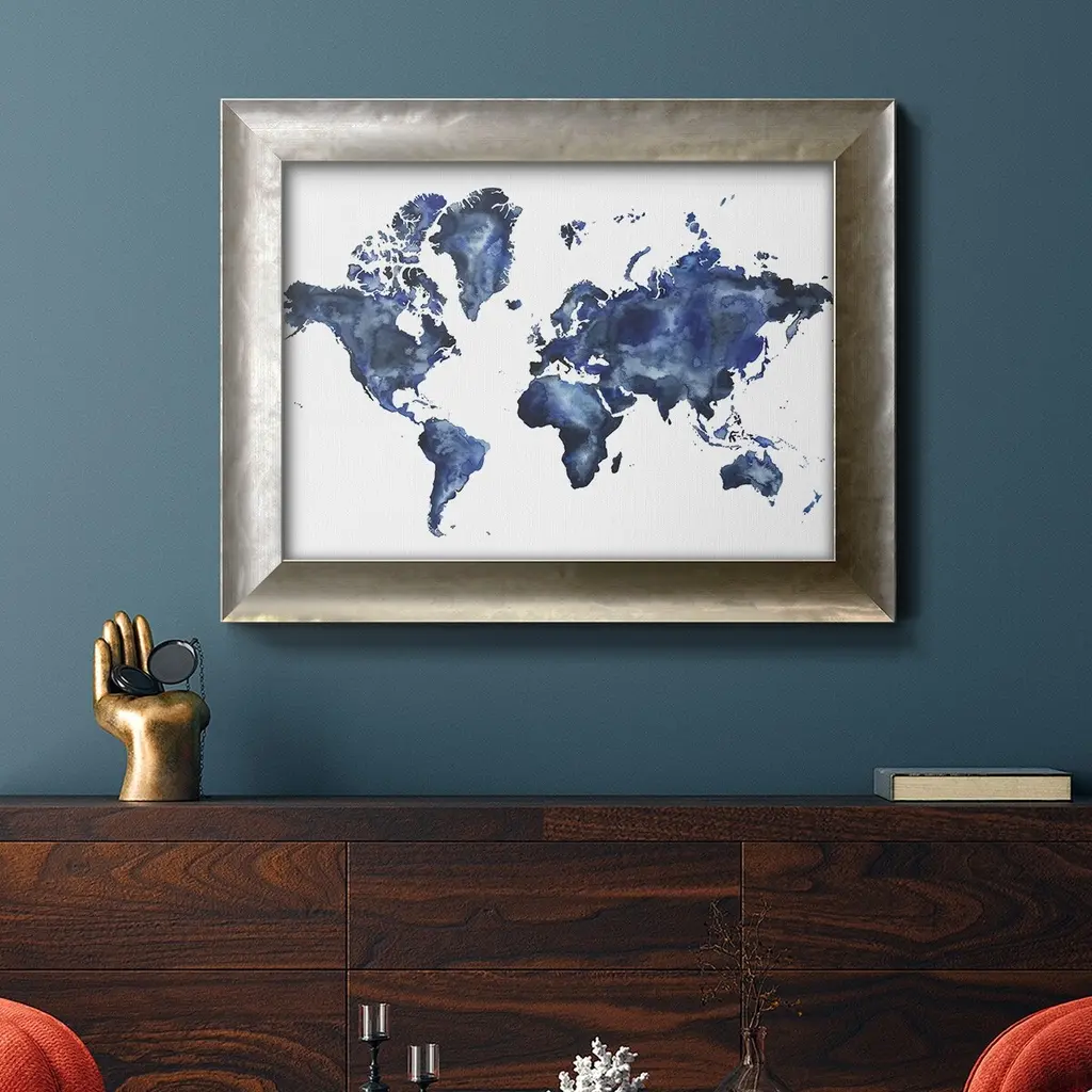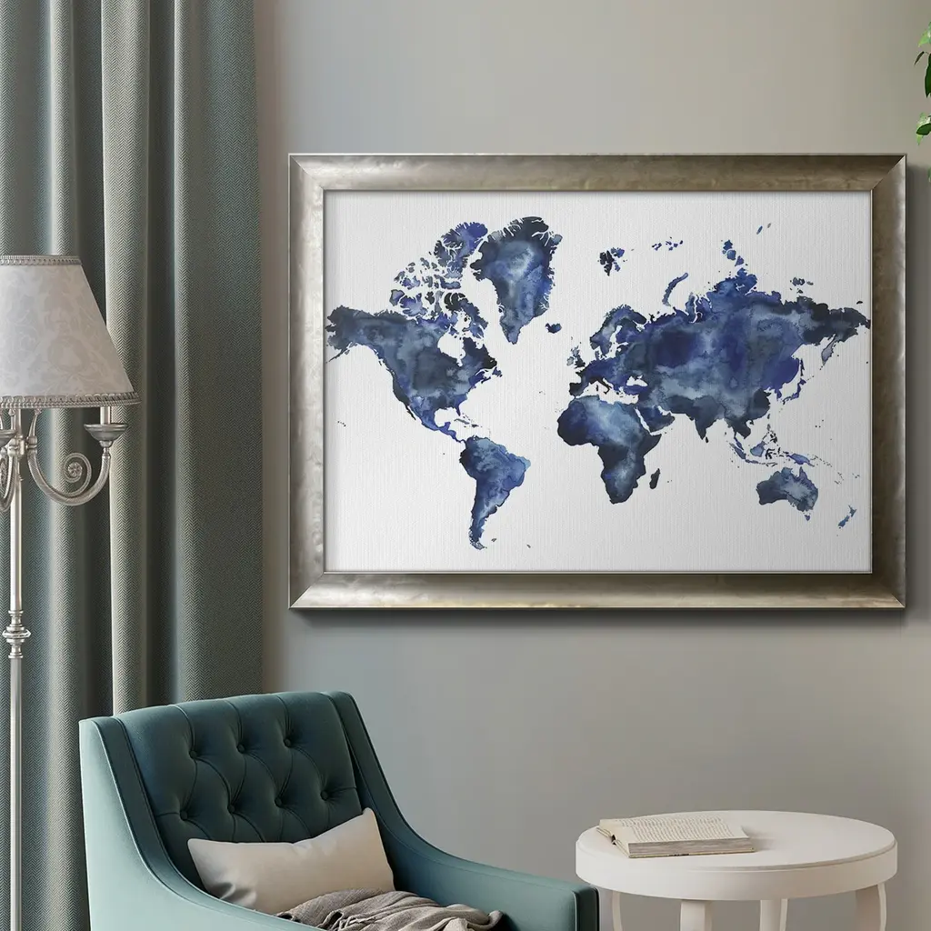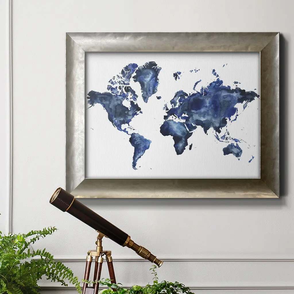 Water World I Premium Framed Canvas- Ready to Hang A Premium Framed Canvas created to last. Framed in distressed wood and available in an array of sizes and colors Featuring a beveled a solid wood stretcher bar, each piece comes ready to hand 3 SIZES AVAILABLE 16''X20'' - Overall Size 18'X27'' - Overall Size 24''x36'' - Overall Size Each piece is made to order. Each piece comes with hanging hardware. Made in the USA Ready to Hang Giclee Paper Print Acrylic Glass Beveled Matt Board