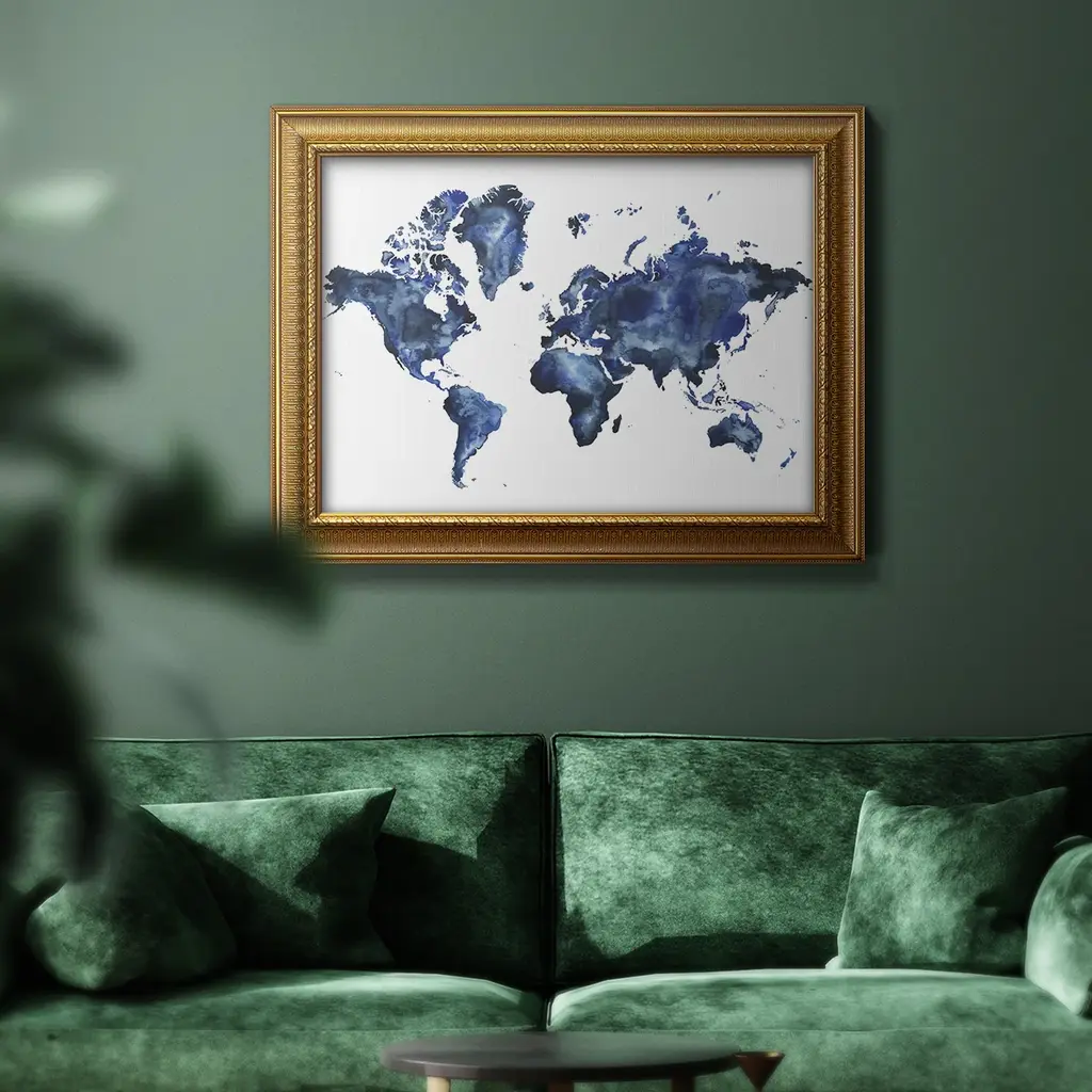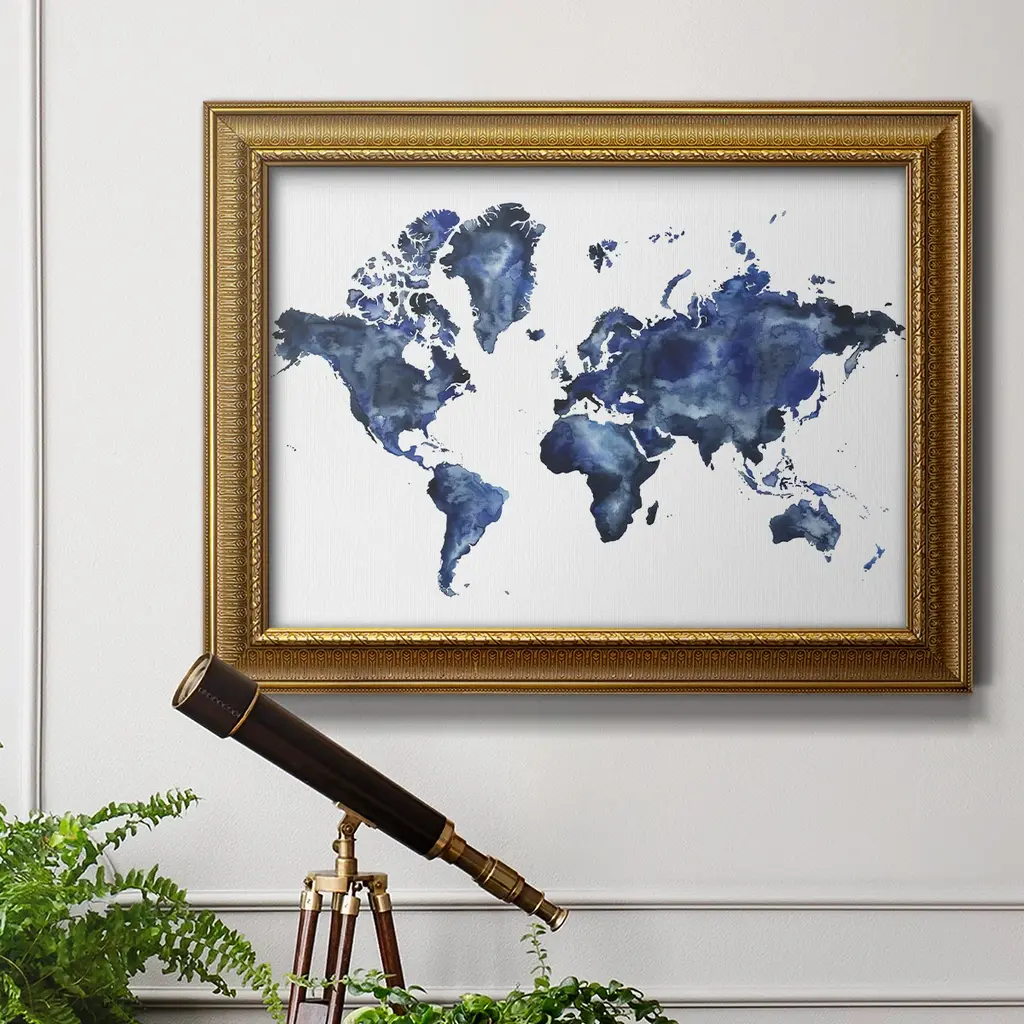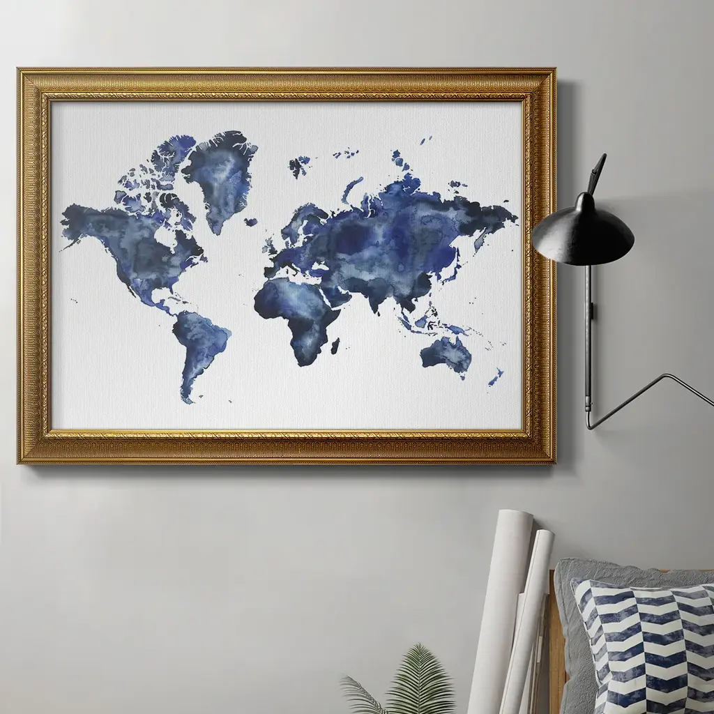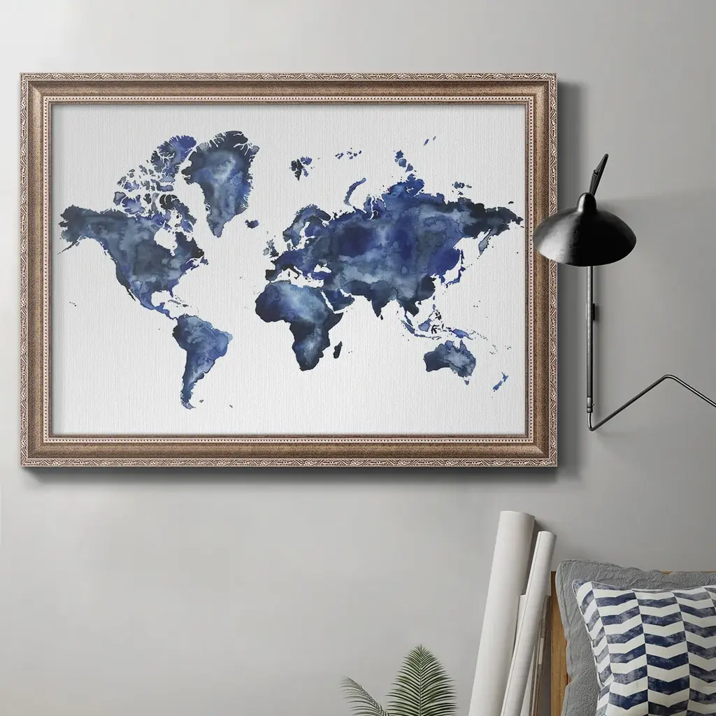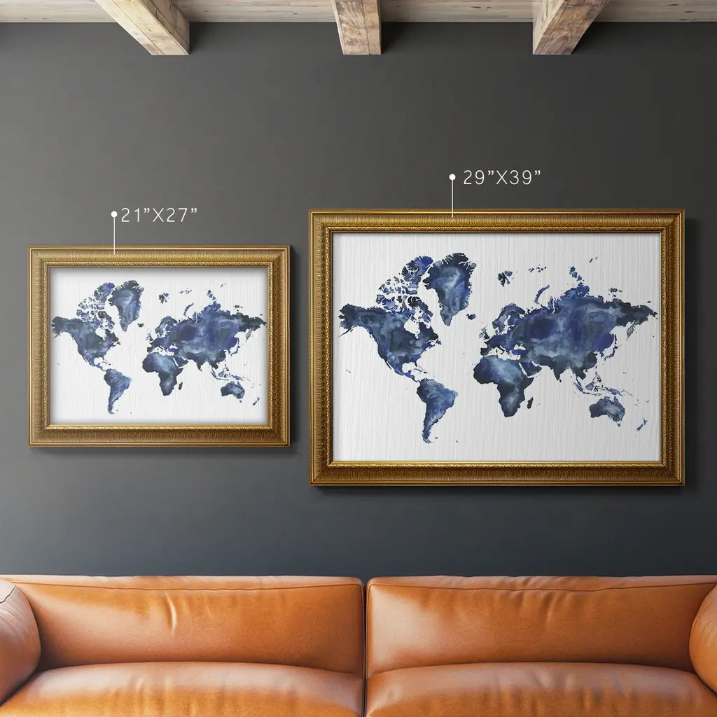 Water World I Premium Framed Canvas- Ready to Hang A Premium Framed Canvas created to last. Framed in distressed wood and available in an array of sizes and colors Featuring a beveled a solid wood stretcher bar, each piece comes ready to hand 3 SIZES AVAILABLE 16''X20'' - Overall Size 18'X27'' - Overall Size 24''x36'' - Overall Size Each piece is made to order. Each piece comes with hanging hardware. Made in the USA Ready to Hang Giclee Paper Print Acrylic Glass Beveled Matt Board