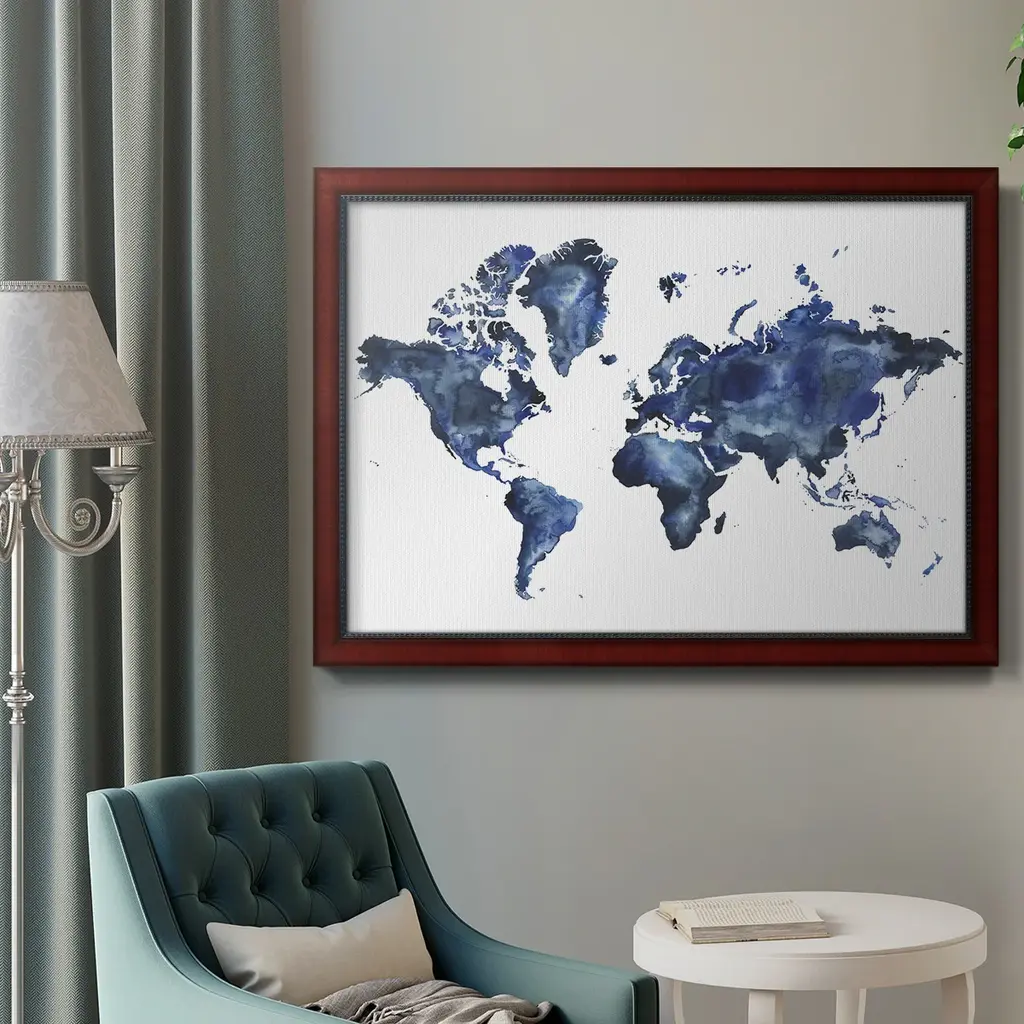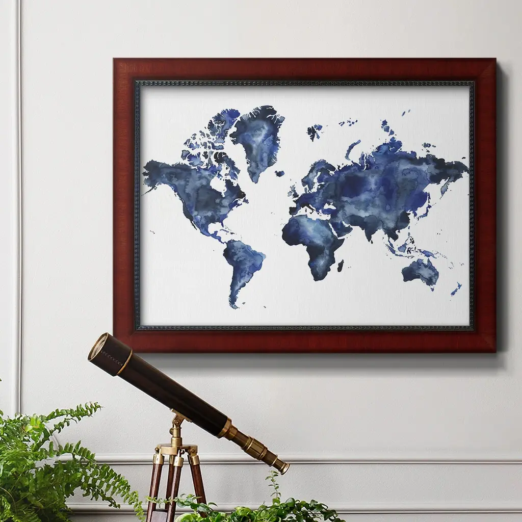 Water World I Premium Framed Canvas- Ready to Hang A Premium Framed Canvas created to last. Framed in distressed wood and available in an array of sizes and colors Featuring a beveled a solid wood stretcher bar, each piece comes ready to hand 3 SIZES AVAILABLE 16''X20'' - Overall Size 18'X27'' - Overall Size 24''x36'' - Overall Size Each piece is made to order. Each piece comes with hanging hardware. Made in the USA Ready to Hang Giclee Paper Print Acrylic Glass Beveled Matt Board