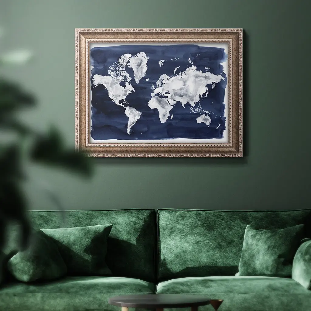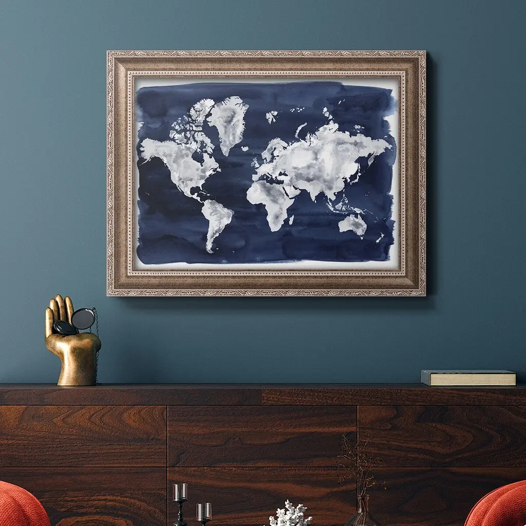 Water World II Premium Framed Canvas- Ready to Hang A Premium Framed Canvas created to last. Framed in distressed wood and available in an array of sizes and colors Featuring a beveled a solid wood stretcher bar, each piece comes ready to hand 3 SIZES AVAILABLE 16''X20'' - Overall Size 18'X27'' - Overall Size 24''x36'' - Overall Size Each piece is made to order. Each piece comes with hanging hardware. Made in the USA Ready to Hang Giclee Paper Print Acrylic Glass Beveled Matt Board