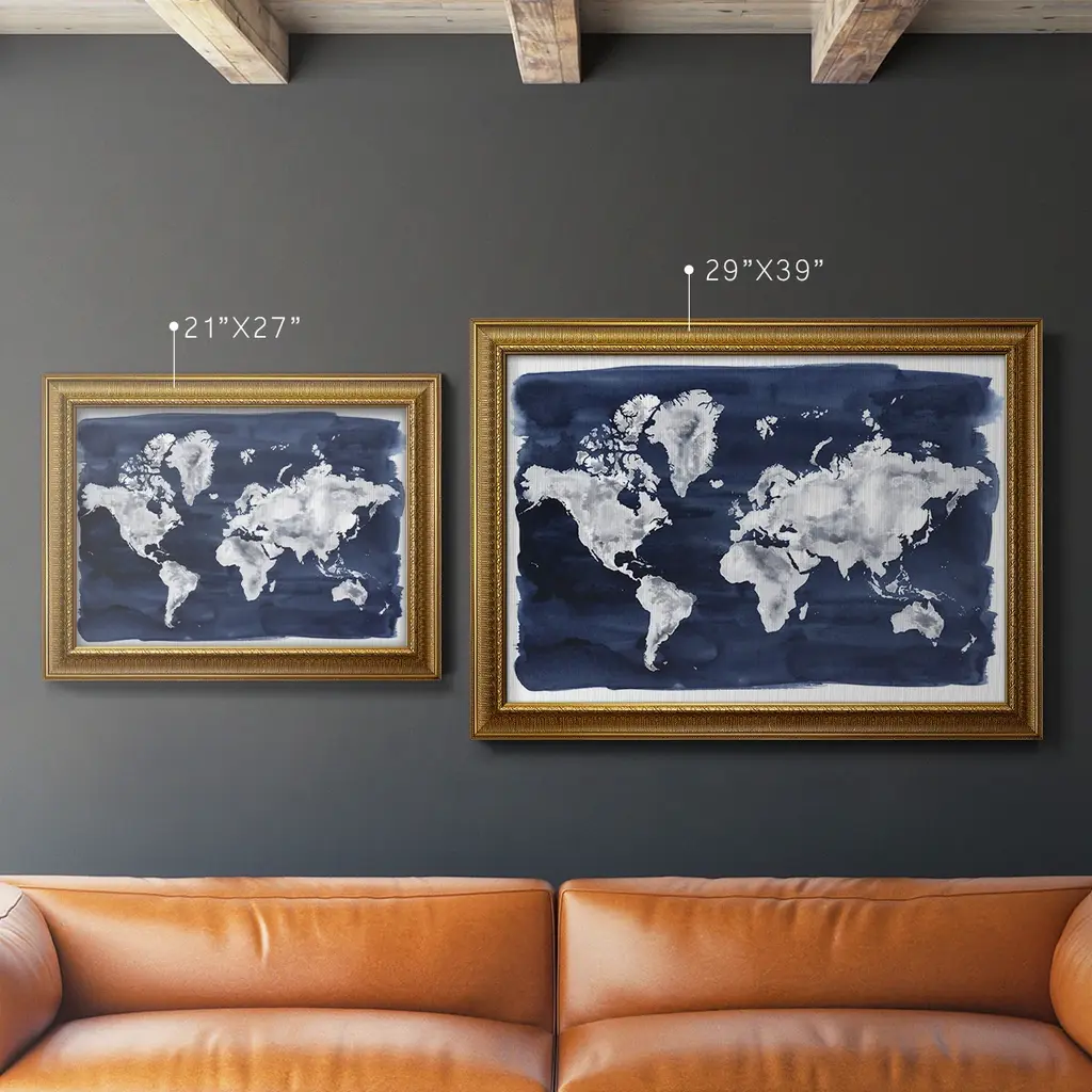 Water World II Premium Framed Canvas- Ready to Hang A Premium Framed Canvas created to last. Framed in distressed wood and available in an array of sizes and colors Featuring a beveled a solid wood stretcher bar, each piece comes ready to hand 3 SIZES AVAILABLE 16''X20'' - Overall Size 18'X27'' - Overall Size 24''x36'' - Overall Size Each piece is made to order. Each piece comes with hanging hardware. Made in the USA Ready to Hang Giclee Paper Print Acrylic Glass Beveled Matt Board