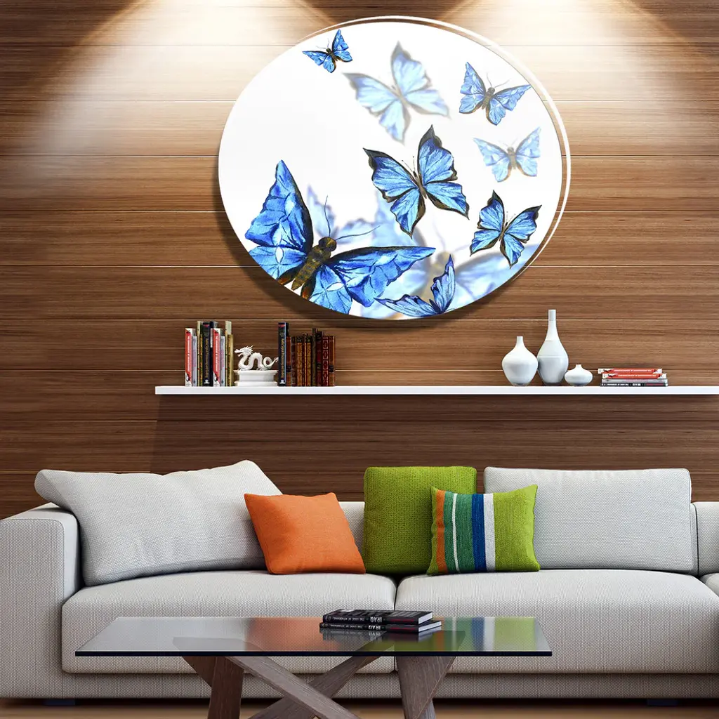 Bring Contemporary Abstraction to your home with this large Circle Metal wall art. This Watercolor Butterflies on White Metal Artwork makes it the focal point of any room or office. - White Gloss Coating ensures colors are extra vibrant with light reflection.- Aluminum grade Sheet Metal with 1 inch mounting frame on the back giving the illusion that the artwork is floating on the wall..- Mounting Brackets are included along with instructions.- High Quality Digital images are created directly into a glossy aluminum panel producing a stunning and captivating print into the glossy finish of the metal.- Water, Fire and Scratch resistant HD Aluminum panels.- Looks better than any photo paper and guaranteed to last at least 20 years- Easy to clean with a microfiber cloth. Colors are far superior to regular Canvas Art. - Easy to Hang