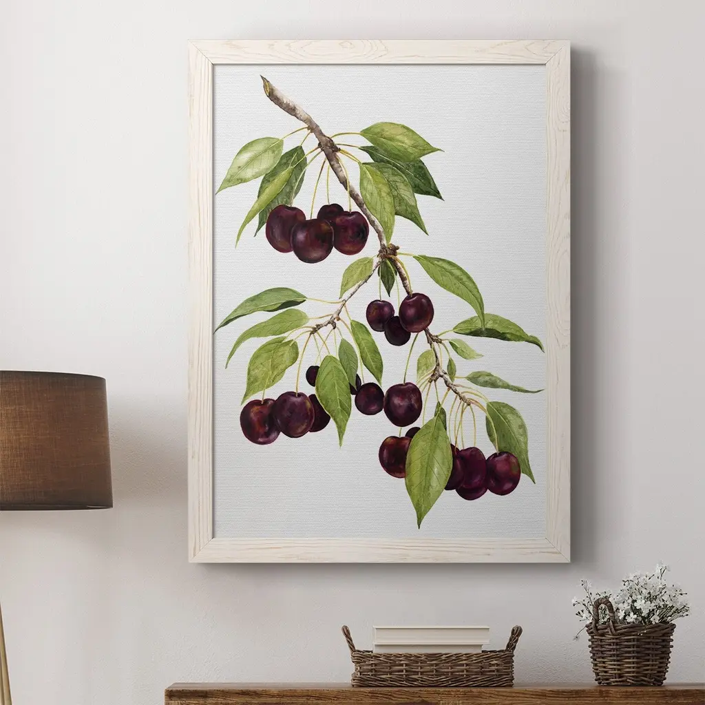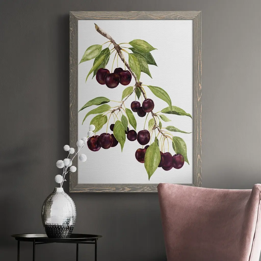 Watercolor Cherries-Premium Framed Canvas - Ready To Hang - 27.5x37.5 - Maple