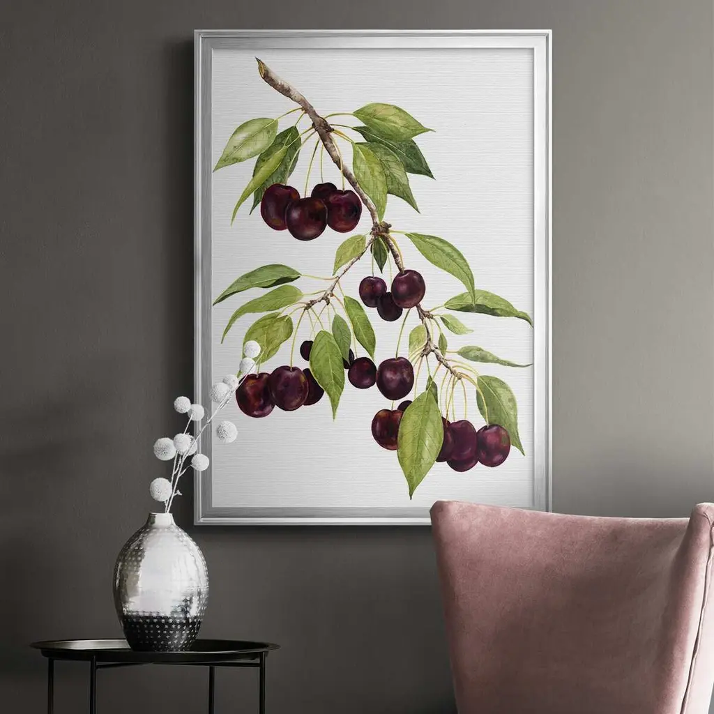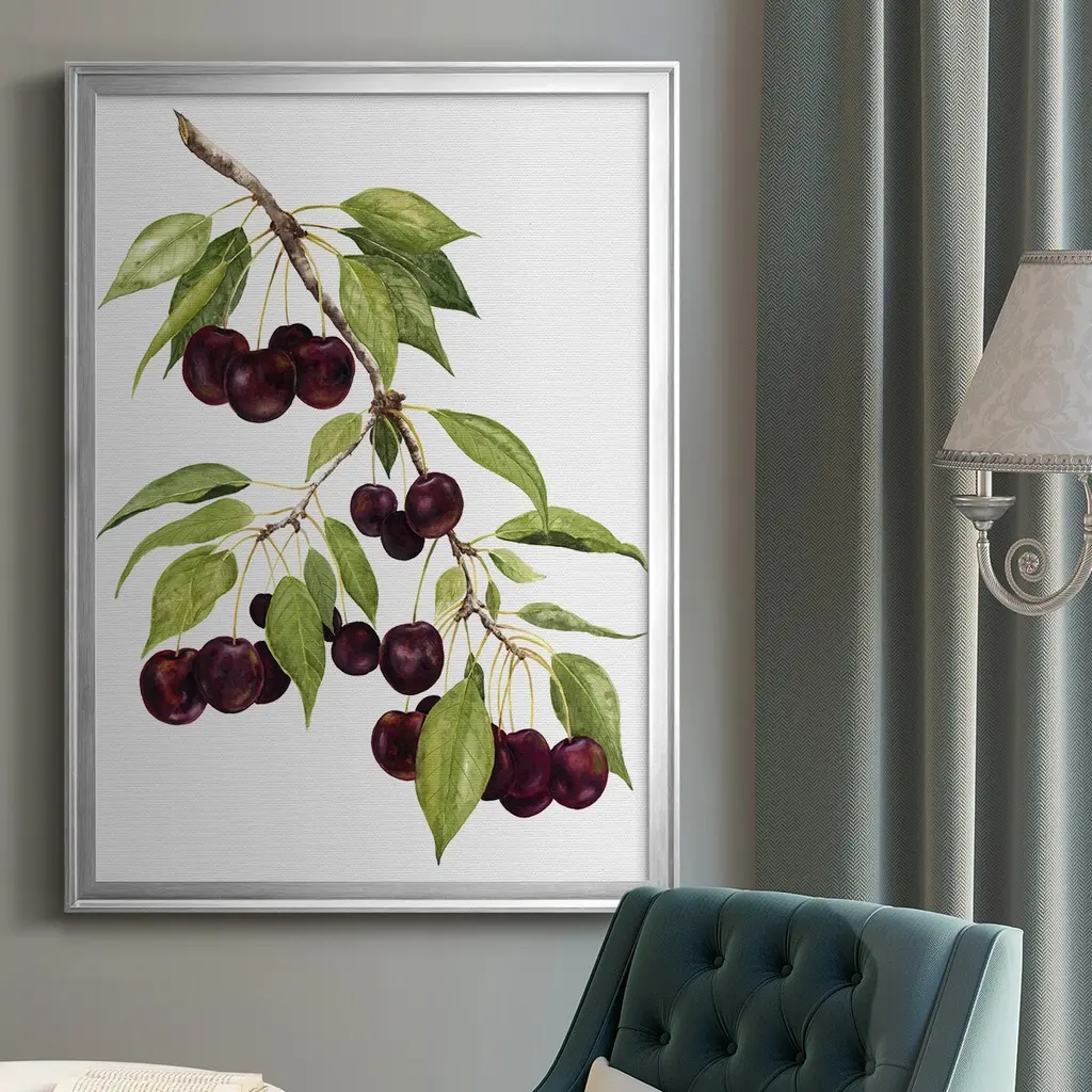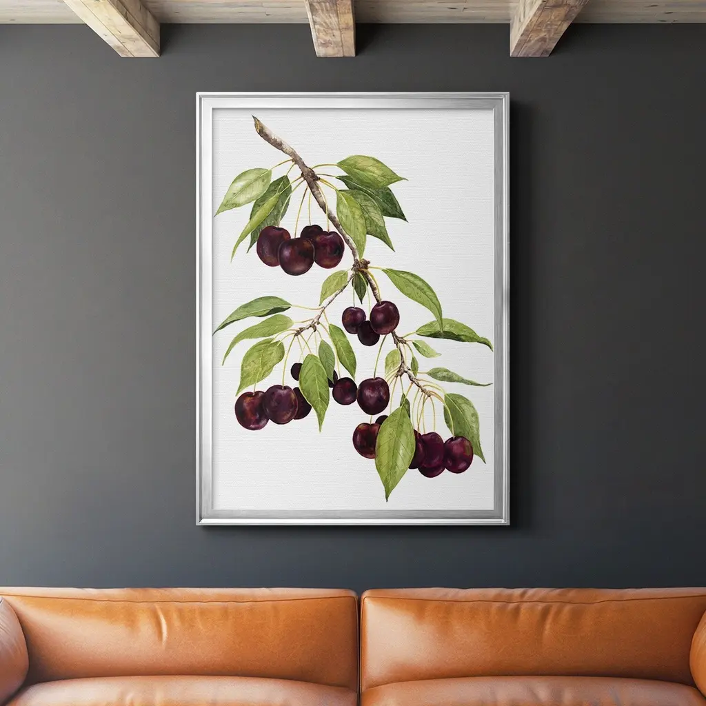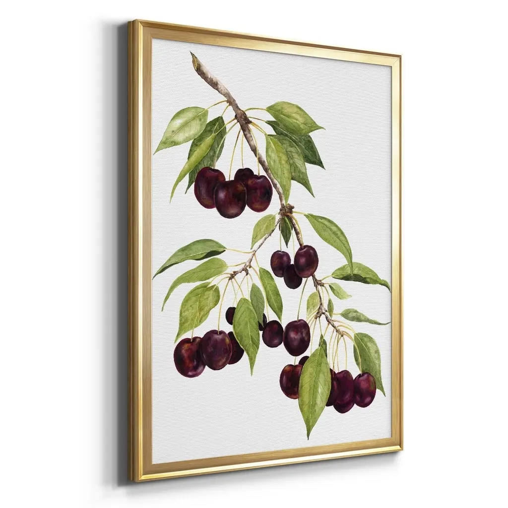 Watercolor Cherries Premium Framed Print - Ready to Hang A Premium Framed Print created to last. Framed in distressed wood and available in an array of sizes and colors Featuring a beveled a solid wood stretcher bar, each piece comes ready to hand 4 SIZES AVAILABLE 30.5''X42.5'' - Overall Size 26.5'X36.5'' - Overall Size 22.5''x30.5'' - Overall Size 18.5''x24.5'' - Overall Size Each piece is made to order. Each piece comes with hanging hardware. Made in the USA Ready to Hang
