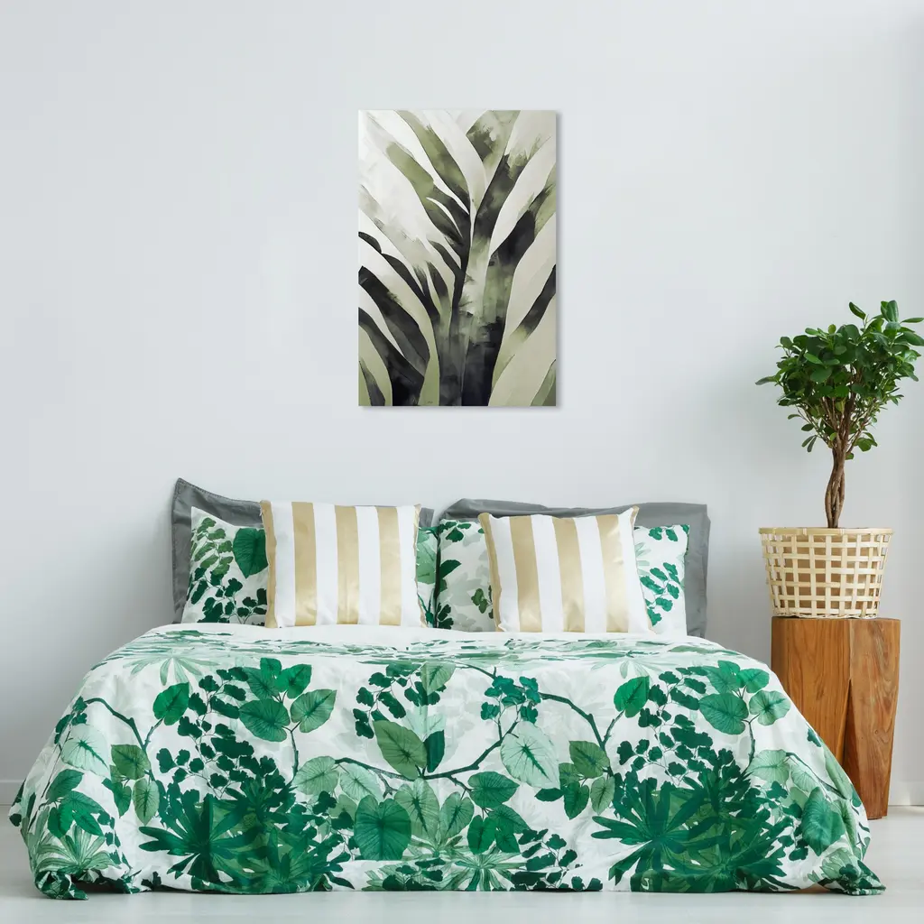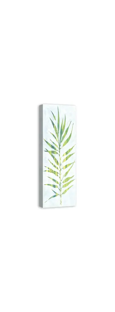 The Watercolor Fern Leaf 12x36 Canvas Wall Art features green leaf on a white background for a simplistic pop of color. This canvas helps you create a unique look in your home. The solid front construction of each wall art product ensures it does not stretch or sag. The outcome is irresistible artistry that ensures a lasting impact on your home.
