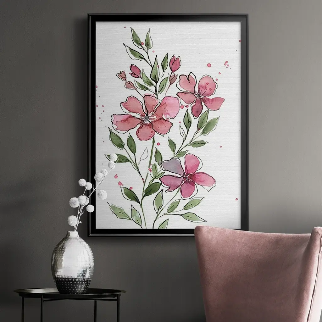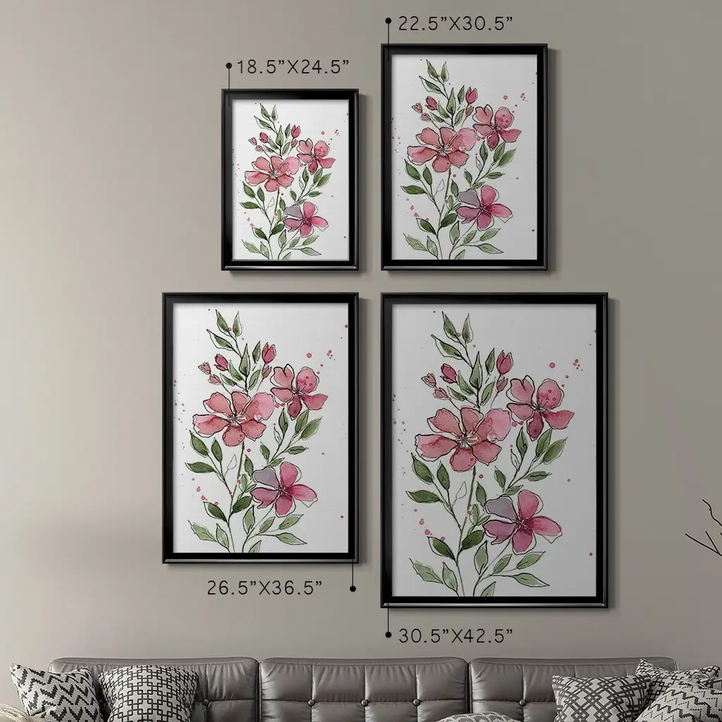 Watercolor Floral Stems I Premium Framed Print - Ready to Hang A Premium Framed Print created to last. Framed in distressed wood and available in an array of sizes and colors Featuring a beveled a solid wood stretcher bar, each piece comes ready to hand 4 SIZES AVAILABLE 30.5''X42.5'' - Overall Size 26.5'X36.5'' - Overall Size 22.5''x30.5'' - Overall Size 18.5''x24.5'' - Overall Size Each piece is made to order. Each piece comes with hanging hardware. Made in the USA Ready to Hang