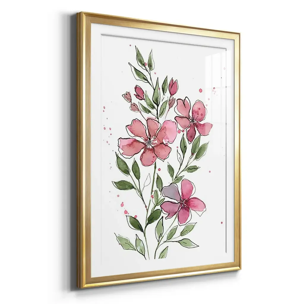Watercolor Floral Stems I Premium Framed Print - Ready to Hang A Premium Framed Print created to last. Framed in distressed wood and available in an array of sizes and colors Featuring a beveled a solid wood stretcher bar, each piece comes ready to hand 4 SIZES AVAILABLE 30.5''X42.5'' - Overall Size 26.5'X36.5'' - Overall Size 22.5''x30.5'' - Overall Size 18.5''x24.5'' - Overall Size Each piece is made to order. Each piece comes with hanging hardware. Made in the USA Ready to Hang Giclee Paper Print Acrylic Glass Beveled Matt Board