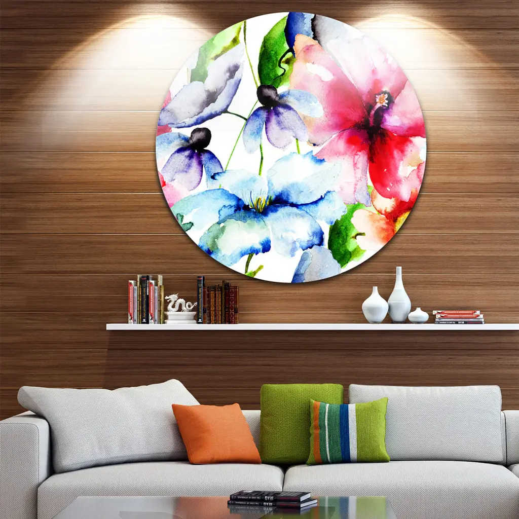 Watercolor Flowers Everywhere, Floral Round Wall Art, 11"