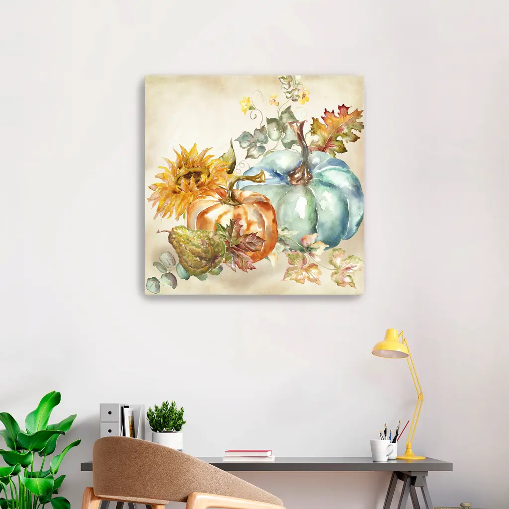Transform any space into a fall retreat with a pumpkin canvas print that blends harvest motifs and seasonal warmth. A charming visual reminder of cozy gatherings and crisp autumn days. Our Gallery Wrap Canvas Prints are proudly assembled with high quality materials in California, USA. Each piece is printed on a thick, archival grade canvas using Giclee technology. It is then hand-stretched by our experienced artisans over solid wood bars, which will not warp over time. The final product is a piece personally crafted for you to confidently display on your wall. Care and Assembly: Ensure that the location of your piece has little to no exposure to heat, sunlight, and moisture. Wipe clean, only if needed. Each piece includes a sawtooth hanger to hang on your wall horizontally.