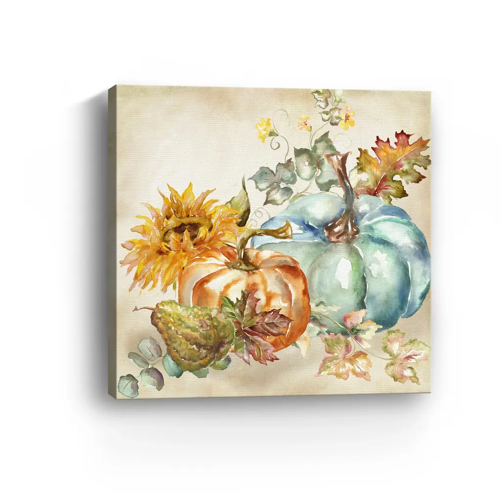 Transform any space into a fall retreat with a pumpkin canvas print that blends harvest motifs and seasonal warmth. A charming visual reminder of cozy gatherings and crisp autumn days. Our Gallery Wrap Canvas Prints are proudly assembled with high quality materials in California, USA. Each piece is printed on a thick, archival grade canvas using Giclee technology. It is then hand-stretched by our experienced artisans over solid wood bars, which will not warp over time. The final product is a piece personally crafted for you to confidently display on your wall. Care and Assembly: Ensure that the location of your piece has little to no exposure to heat, sunlight, and moisture. Wipe clean, only if needed. Each piece includes a sawtooth hanger to hang on your wall horizontally.