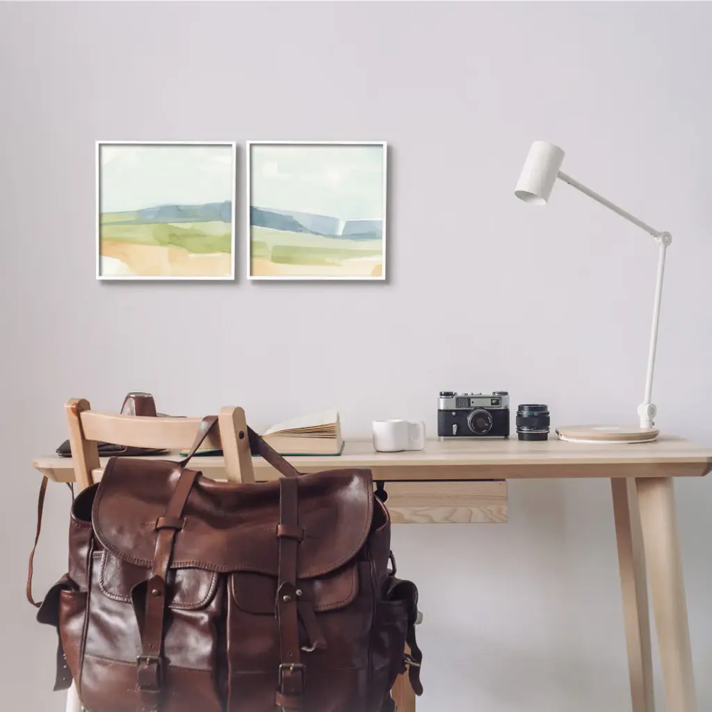 Watercolor Hills Abstract Landscape Blue Green Brown Tones,12 X 12