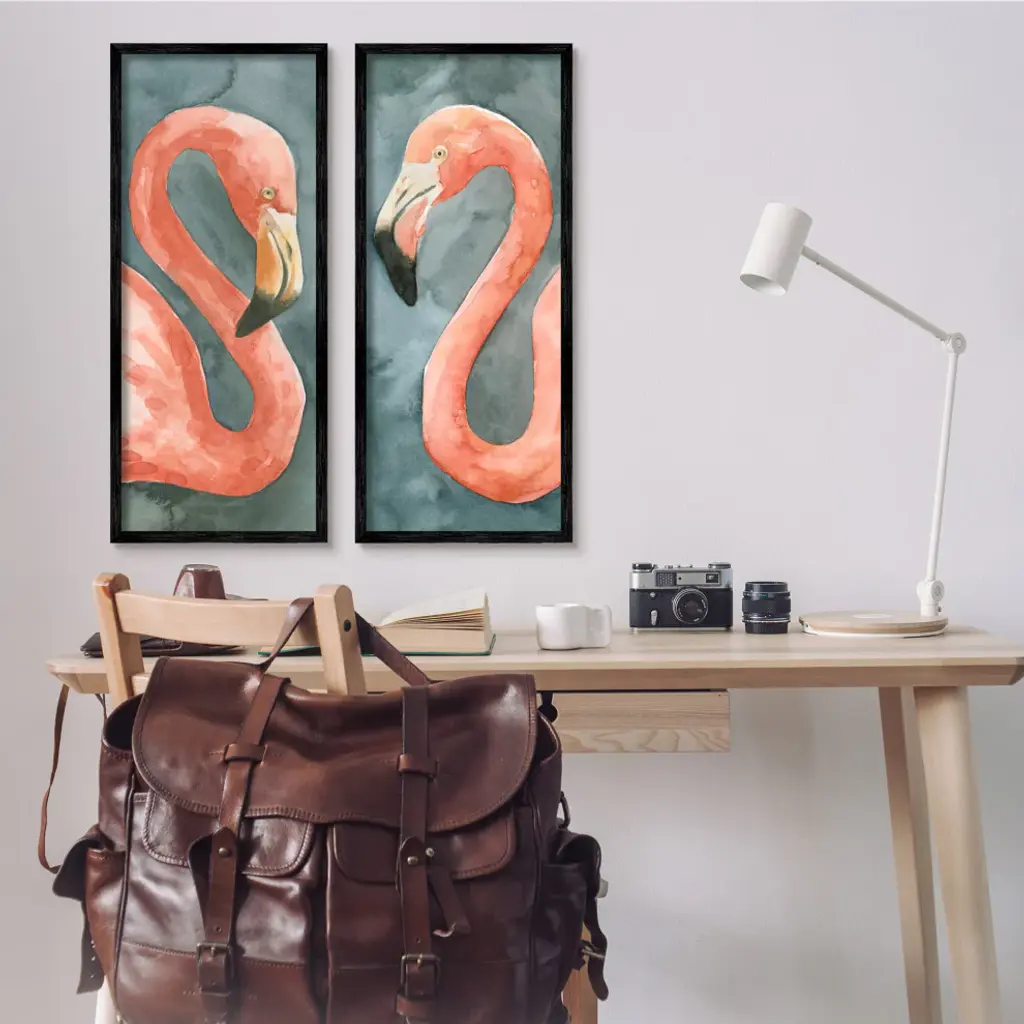 Watercolor Pink Flamingo Pair Watercolor Animal Portrait,13 X 30
