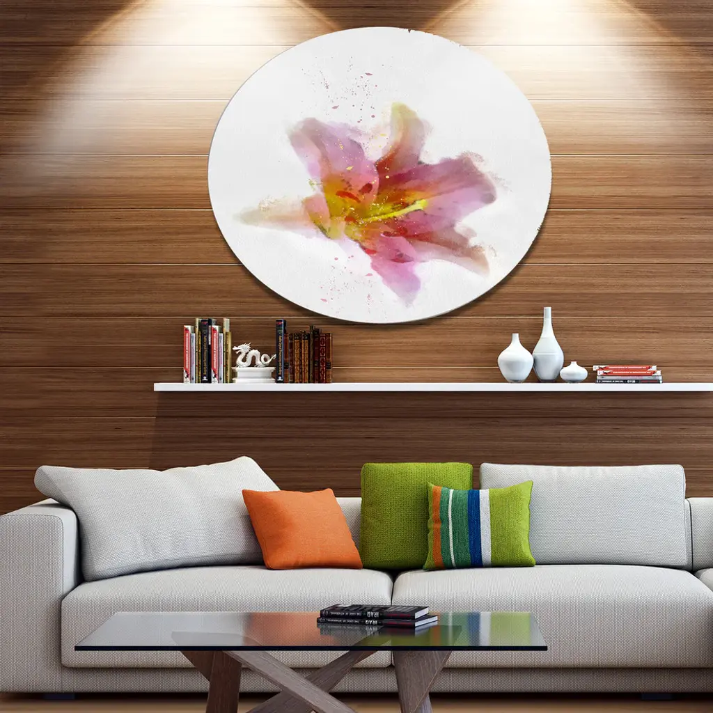Bring Contemporary Abstraction to your home with this large Circle Metal wall art. This Watercolor Pink Lily Flower Sketch Metal Artwork makes it the focal point of any room or office. - White Gloss Coating ensures colors are extra vibrant with light reflection.- Aluminum grade Sheet Metal with 1 inch mounting frame on the back giving the illusion that the artwork is floating on the wall..- Mounting Brackets are included along with instructions.- High Quality Digital images are created directly into a glossy aluminum panel producing a stunning and captivating print into the glossy finish of the metal.- Water, Fire and Scratch resistant HD Aluminum panels.- Looks better than any photo paper and guaranteed to last at least 20 years- Easy to clean with a microfiber cloth. Colors are far superior to regular Canvas Art. - Easy to Hang