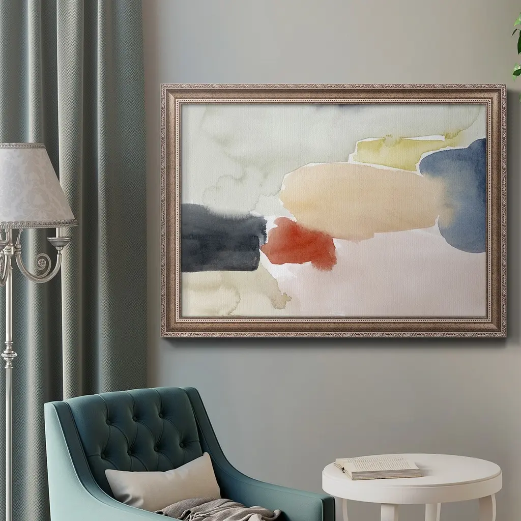 Watercolor Playground I Premium Framed Canvas- Ready to Hang A Premium Framed Canvas created to last. Framed in distressed wood and available in an array of sizes and colors Featuring a beveled a solid wood stretcher bar, each piece comes ready to hand 3 SIZES AVAILABLE 16''X20'' - Overall Size 18'X27'' - Overall Size 24''x36'' - Overall Size Each piece is made to order. Each piece comes with hanging hardware. Made in the USA Ready to Hang Giclee Paper Print Acrylic Glass Beveled Matt Board