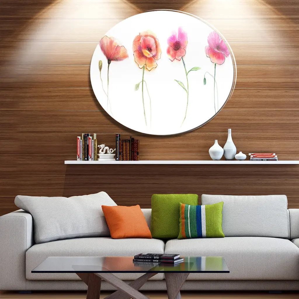 Bring Contemporary Abstraction to your home with this large Circle Metal wall art. This Watercolor Poppy Flowers Sketch Metal Artwork makes it the focal point of any room or office. - White Gloss Coating ensures colors are extra vibrant with light reflection.- Aluminum grade Sheet Metal with 1 inch mounting frame on the back giving the illusion that the artwork is floating on the wall..- Mounting Brackets are included along with instructions.- High Quality Digital images are created directly into a glossy aluminum panel producing a stunning and captivating print into the glossy finish of the metal.- Water, Fire and Scratch resistant HD Aluminum panels.- Looks better than any photo paper and guaranteed to last at least 20 years- Easy to clean with a microfiber cloth. Colors are far superior to regular Canvas Art. - Easy to Hang