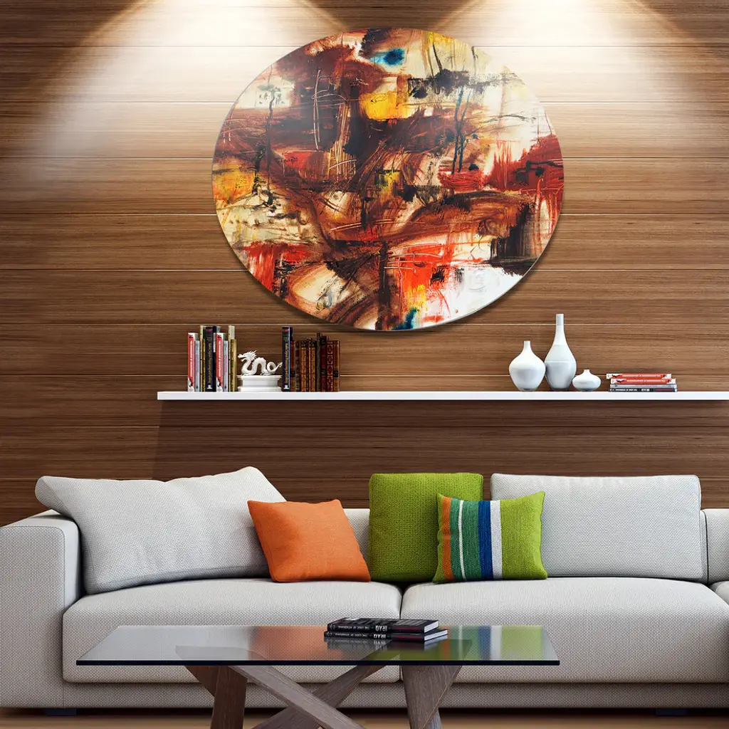 Bring Contemporary Abstraction to your home with this large Circle Metal wall art. This Watercolor Red and Yellow Spots Metal Artwork makes it the focal point of any room or office. - White Gloss Coating ensures colors are extra vibrant with light reflection.- Aluminum grade Sheet Metal with 1 inch mounting frame on the back giving the illusion that the artwork is floating on the wall..- Mounting Brackets are included along with instructions.- High Quality Digital images are created directly into a glossy aluminum panel producing a stunning and captivating print into the glossy finish of the metal.- Water, Fire and Scratch resistant HD Aluminum panels.- Looks better than any photo paper and guaranteed to last at least 20 years- Easy to clean with a microfiber cloth. Colors are far superior to regular Canvas Art. - Easy to Hang