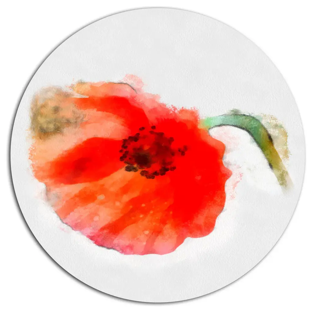 Watercolor Red Poppy Flower, Flower Large Disc Metal Wall Art, 23"