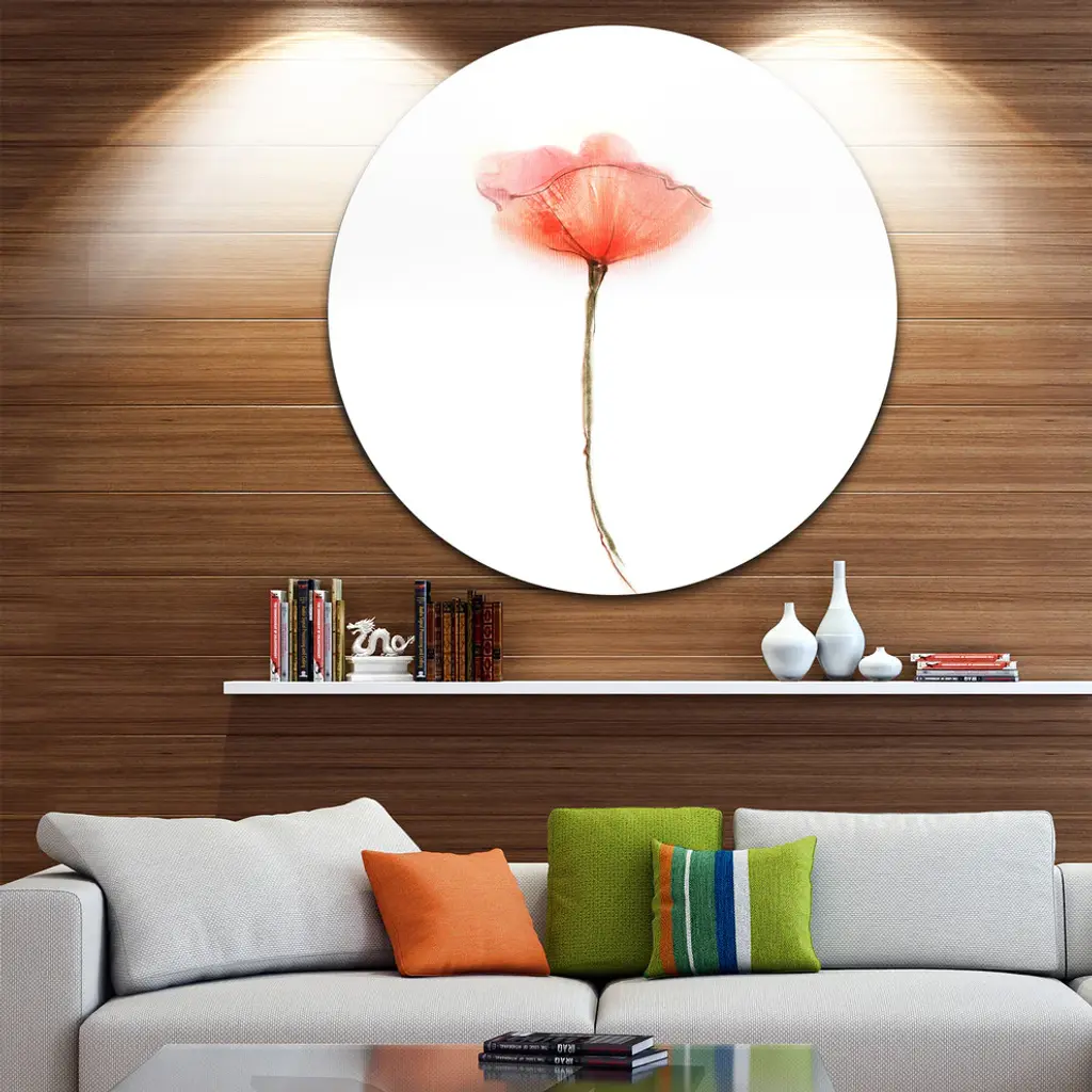 Bring Contemporary Abstraction to your home with this large Circle Metal wall art. This Watercolor Large Red Poppy Flower Metal Artwork makes it the focal point of any room or office. - White Gloss Coating ensures colors are extra vibrant with light reflection.- Aluminum grade Sheet Metal with 1 inch mounting frame on the back giving the illusion that the artwork is floating on the wall..- Mounting Brackets are included along with instructions.- High Quality Digital images are created directly into a glossy aluminum panel producing a stunning and captivating print into the glossy finish of the metal.- Water, Fire and Scratch resistant HD Aluminum panels.- Looks better than any photo paper and guaranteed to last at least 20 years- Easy to clean with a microfiber cloth. Colors are far superior to regular Canvas Art. - Easy to Hang