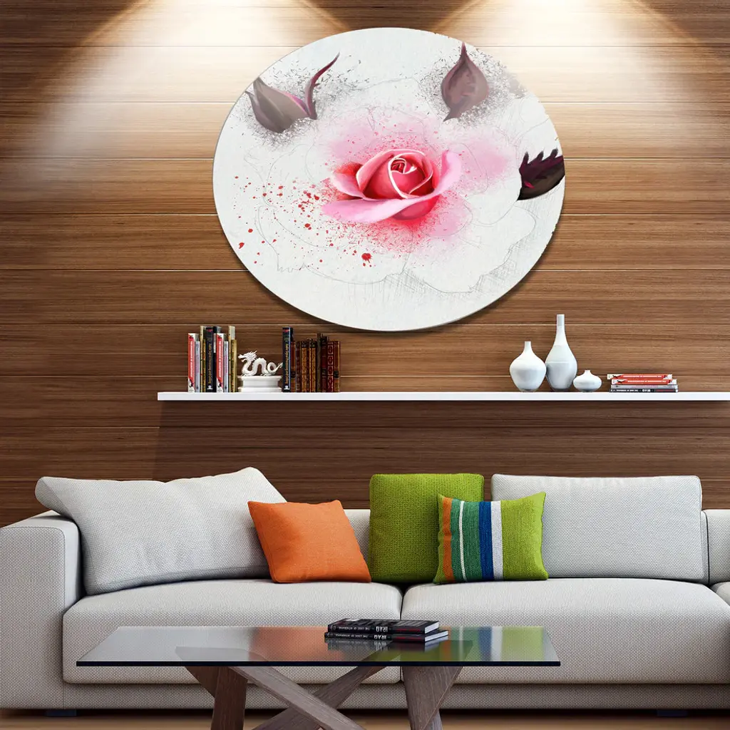Bring Contemporary Abstraction to your home with this large Circle Metal wall art. This Watercolor Rose with Brown Buds Metal Artwork makes it the focal point of any room or office. - White Gloss Coating ensures colors are extra vibrant with light reflection.- Aluminum grade Sheet Metal with 1 inch mounting frame on the back giving the illusion that the artwork is floating on the wall..- Mounting Brackets are included along with instructions.- High Quality Digital images are created directly into a glossy aluminum panel producing a stunning and captivating print into the glossy finish of the metal.- Water, Fire and Scratch resistant HD Aluminum panels.- Looks better than any photo paper and guaranteed to last at least 20 years- Easy to clean with a microfiber cloth. Colors are far superior to regular Canvas Art. - Easy to Hang