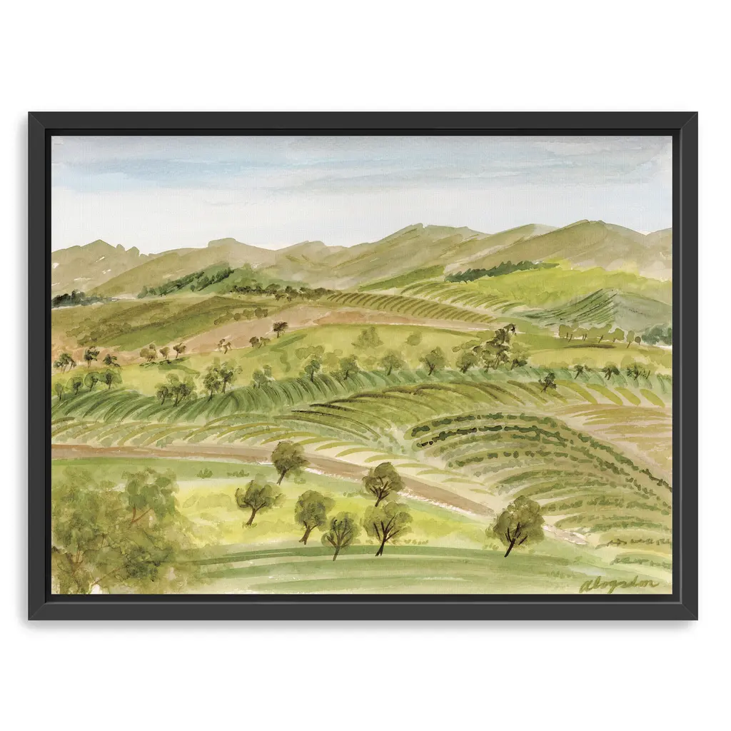 Watercolor Santa Ynez Valley Canvas Giclee - Framed / Dark Walnut / 30x40