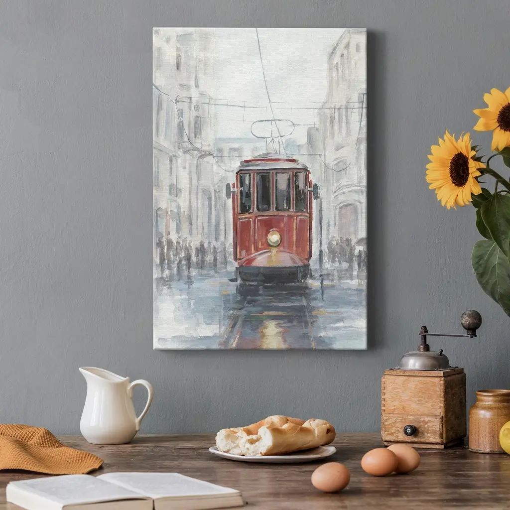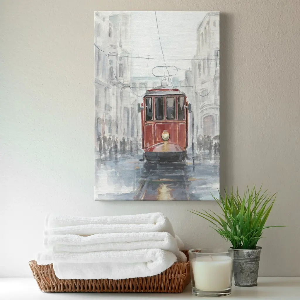 Watercolor Streetcar Study I Premium Gallery Wrapped Canvas - Ready to Hang A premium hand stretched gallery wrapped canvas print created to last. Featuring a beveled a solid wood stretcher bar, each piece comes ready to hand 5 SIZES AVAILABLE 8''X12'' - Overall Size 16'X20'' - Overall Size 24''x32'' - Overall Size 30''x40'' - Overall Size 36''x48'' - Overall Size Each piece is made to order. Built to Last Each piece comes ready to hang Solid wood stretcher Fade and Water resistant Made domestically