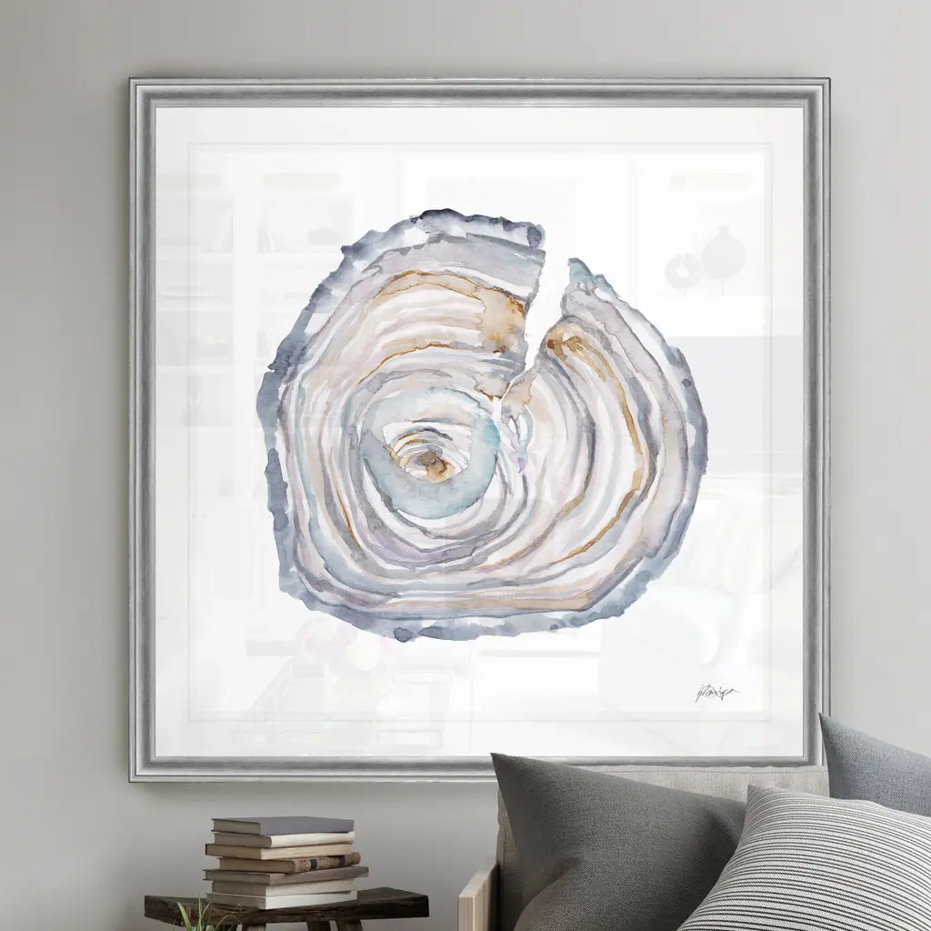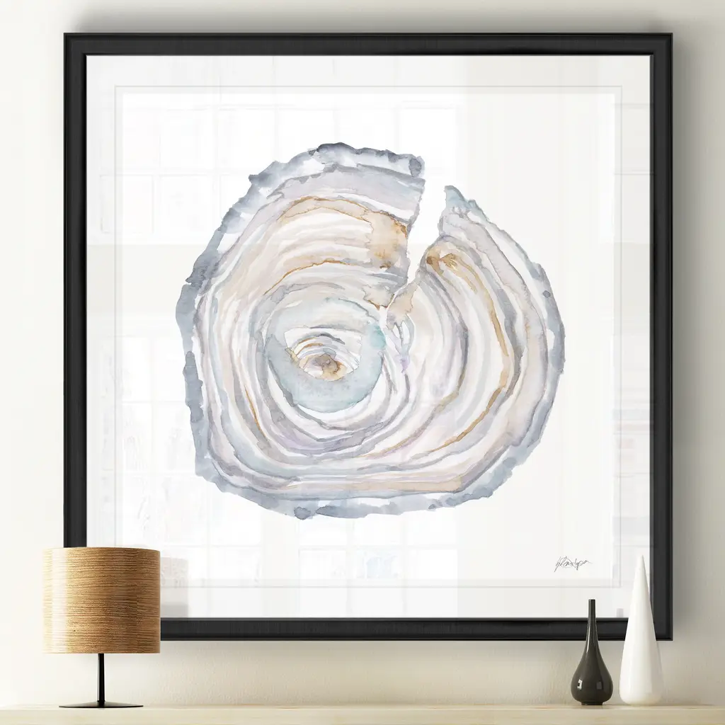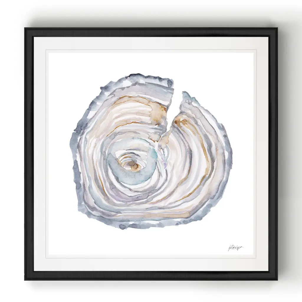 Watercolor Tree Ring II -Black Framed Print A premium Black Framed giclee print Featuring a beveled a matt , acrylic glass, and a high quality giclee print 5 SIZES AVAILABLE 34''x34''- Overall Size 30''x30'' - Overall Size 26''x26''' - Overall Size 22''x22''' - Overall Size 18''x18''' - Overall Size Each piece is made to order. Built to Last Each piece comes ready to hang Fade and Water resistant Made domestically