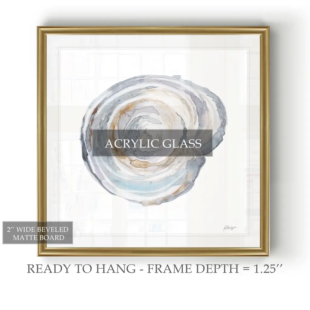 Watercolor Tree Ring III -Black Framed Print A premium Black Framed giclee print Featuring a beveled a matt , acrylic glass, and a high quality giclee print 5 SIZES AVAILABLE 34''x34''- Overall Size 30''x30'' - Overall Size 26''x26''' - Overall Size 22''x22''' - Overall Size 18''x18''' - Overall Size Each piece is made to order. Built to Last Each piece comes ready to hang Fade and Water resistant Made domestically