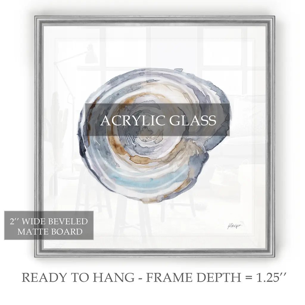 Watercolor Tree Ring III -Black Framed Print A premium Black Framed giclee print Featuring a beveled a matt , acrylic glass, and a high quality giclee print 5 SIZES AVAILABLE 34''x34''- Overall Size 30''x30'' - Overall Size 26''x26''' - Overall Size 22''x22''' - Overall Size 18''x18''' - Overall Size Each piece is made to order. Built to Last Each piece comes ready to hang Fade and Water resistant Made domestically