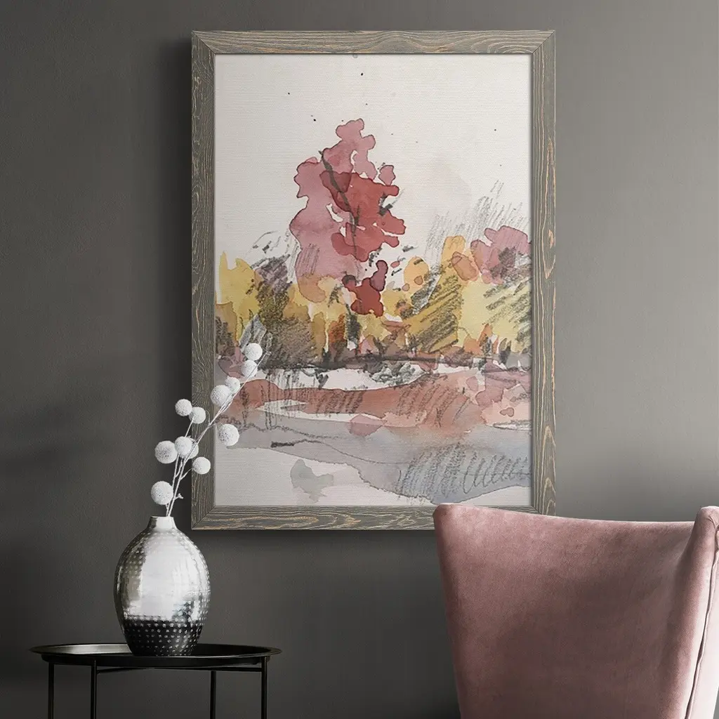 Watercolor Treeline Sketch I-Premium Framed Canvas - Ready To Hang - 27.5x37.5 - White