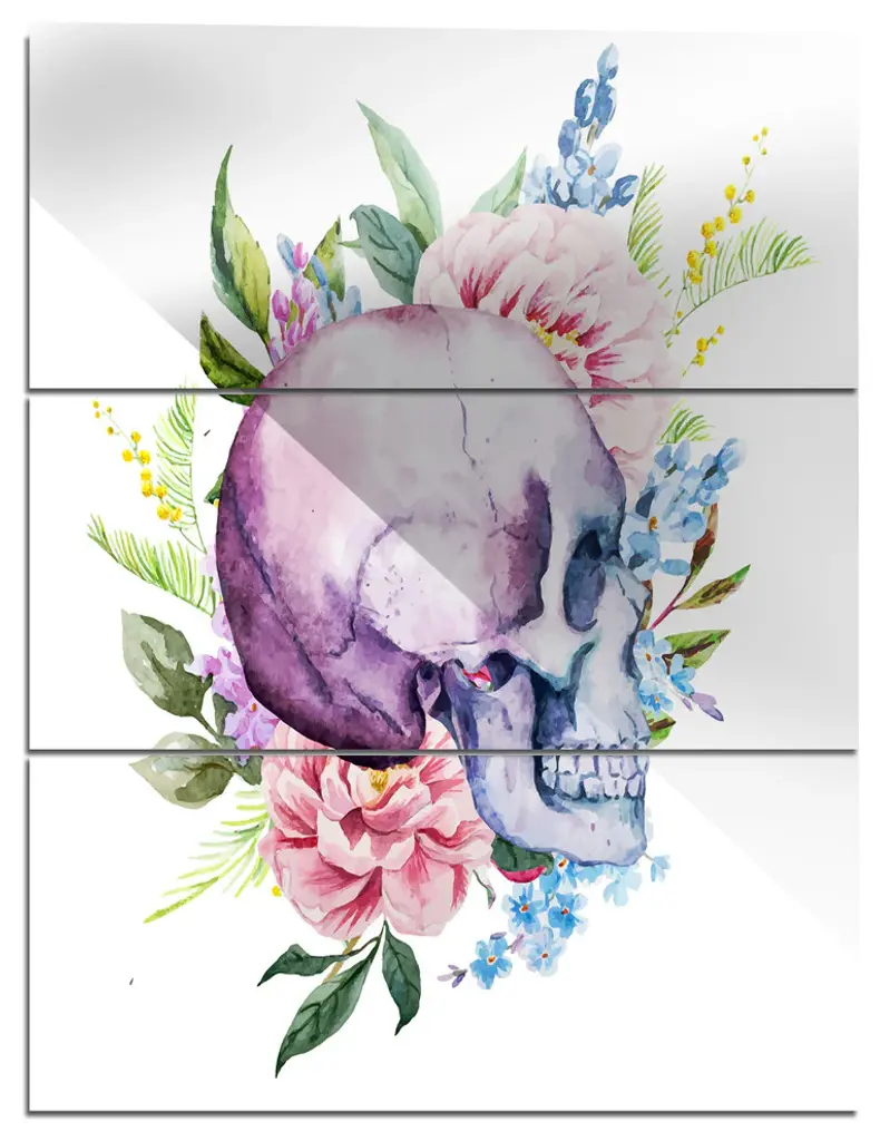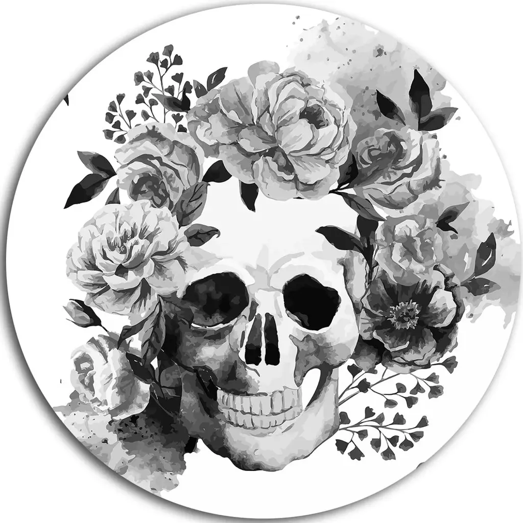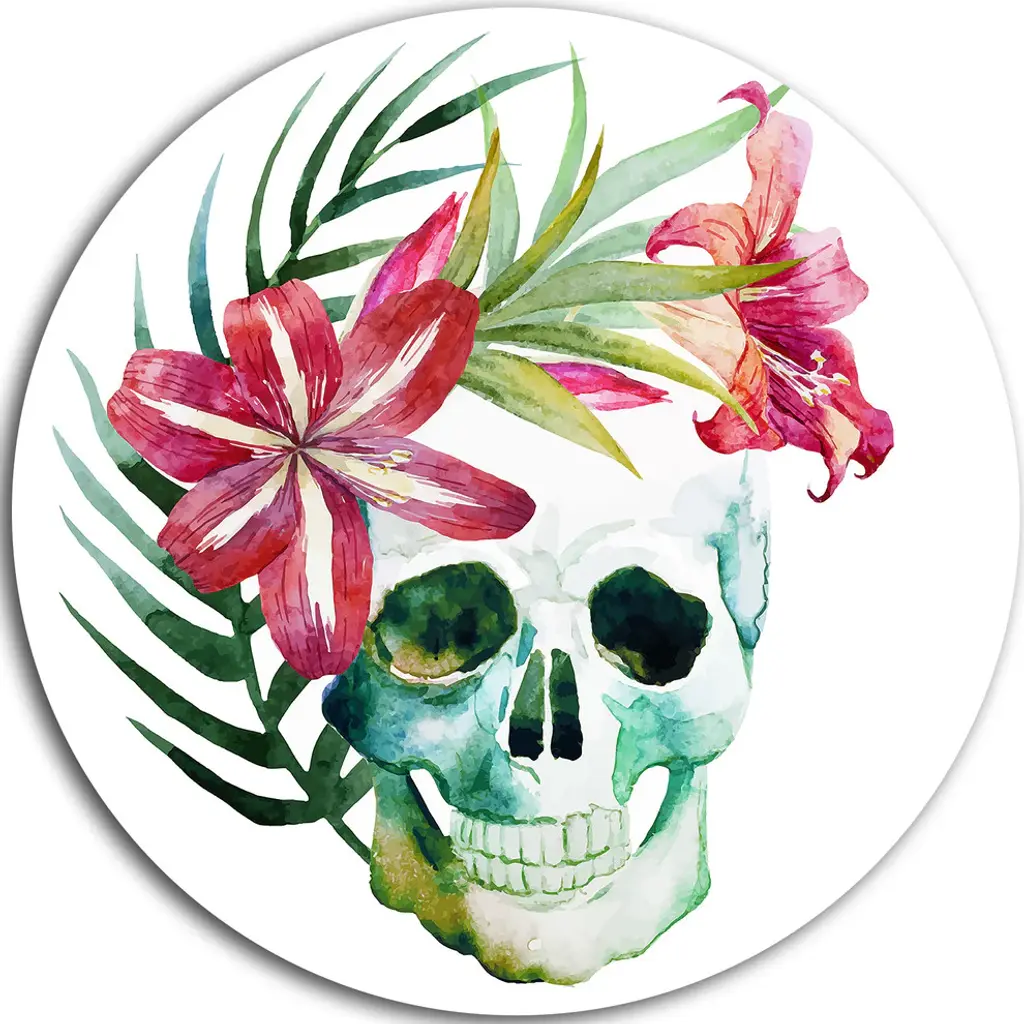 Watercolor Vector Skull, Floral Digital Disc Metal Artwork, 11"