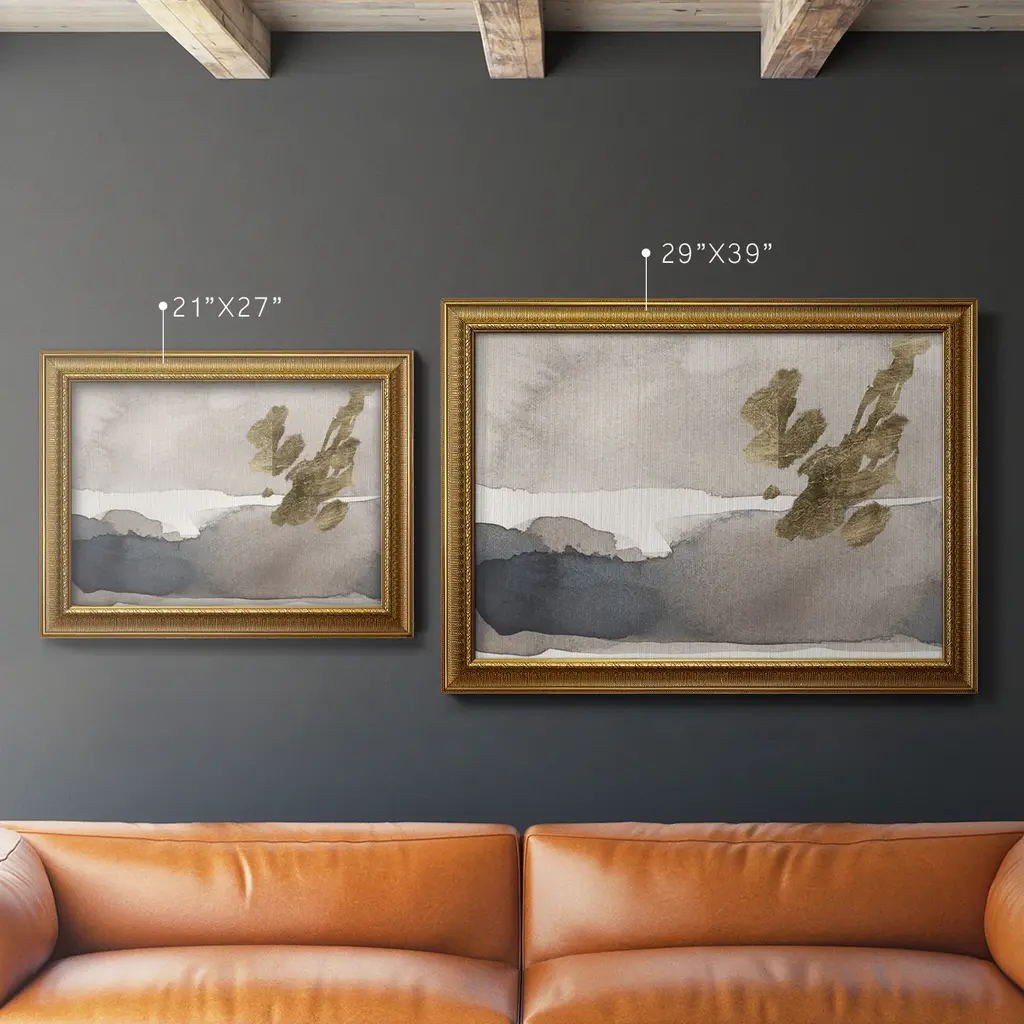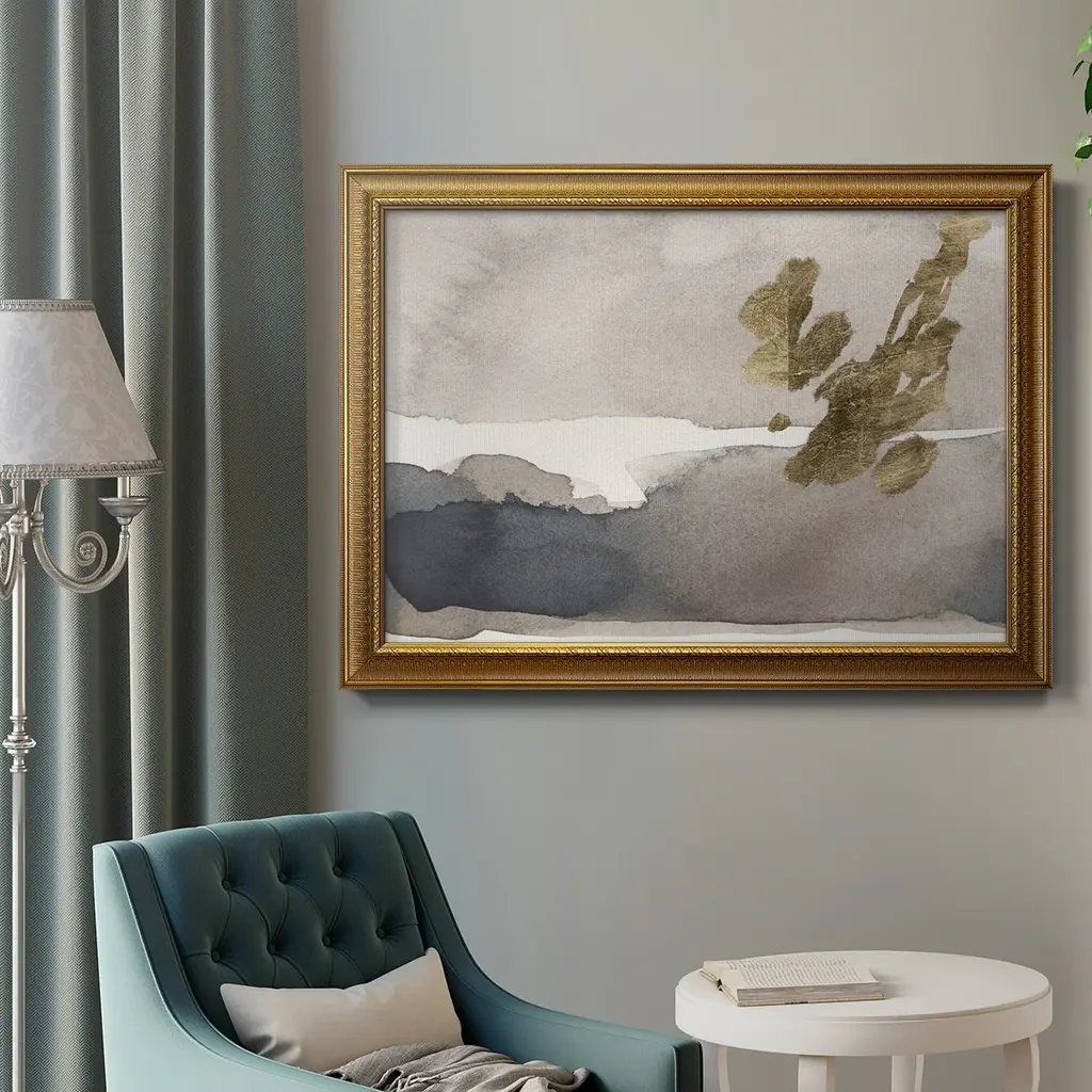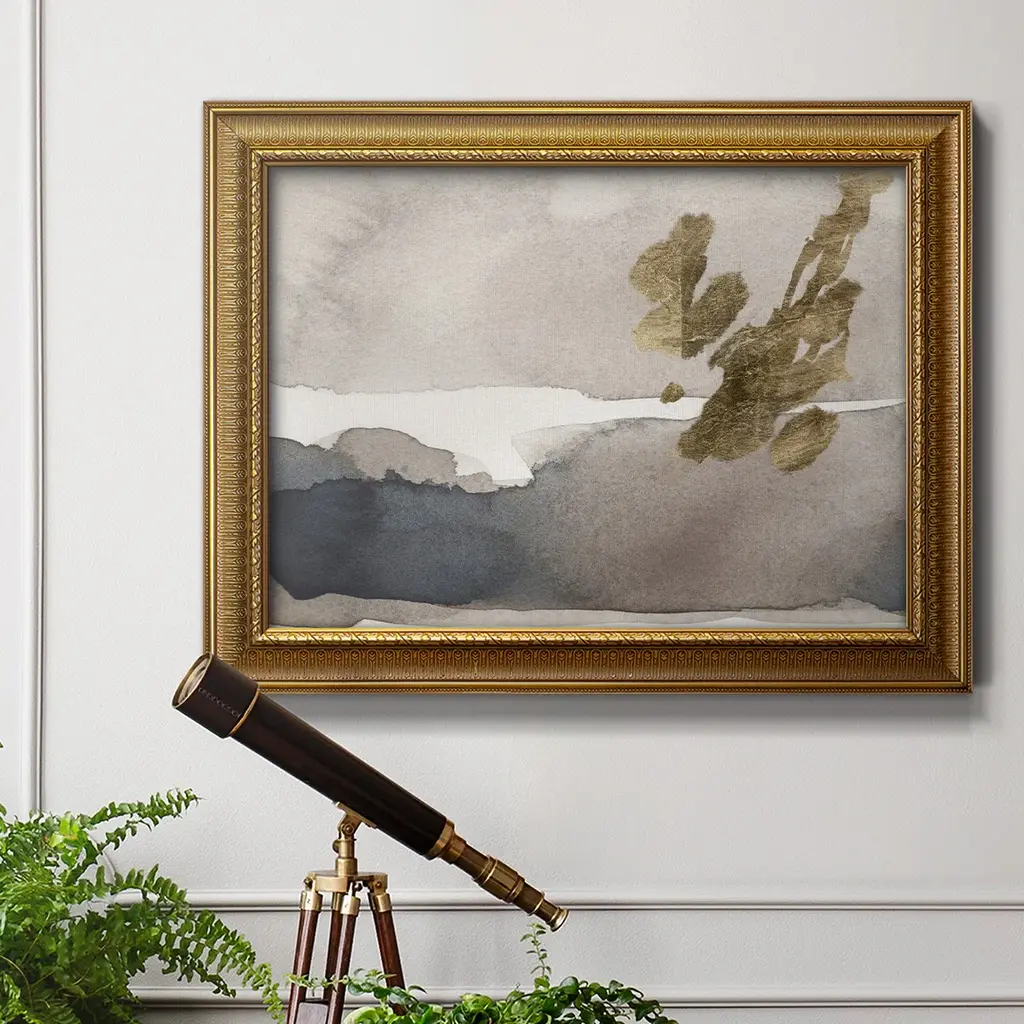 Watercolor with Gold II Premium Framed Canvas- Ready to Hang A Premium Framed Canvas created to last. Framed in distressed wood and available in an array of sizes and colors Featuring a beveled a solid wood stretcher bar, each piece comes ready to hand 3 SIZES AVAILABLE 16''X20'' - Overall Size 18'X27'' - Overall Size 24''x36'' - Overall Size Each piece is made to order. Each piece comes with hanging hardware. Made in the USA Ready to Hang Giclee Paper Print Acrylic Glass Beveled Matt Board