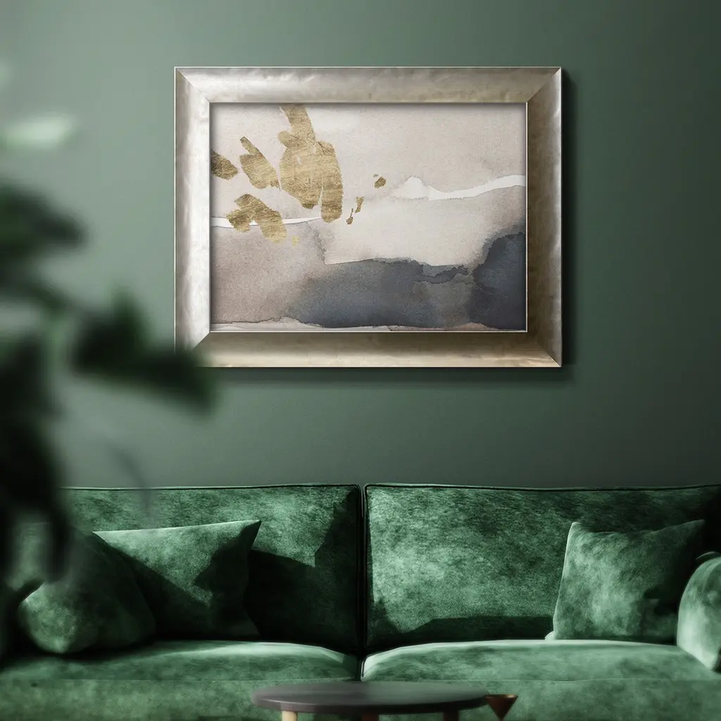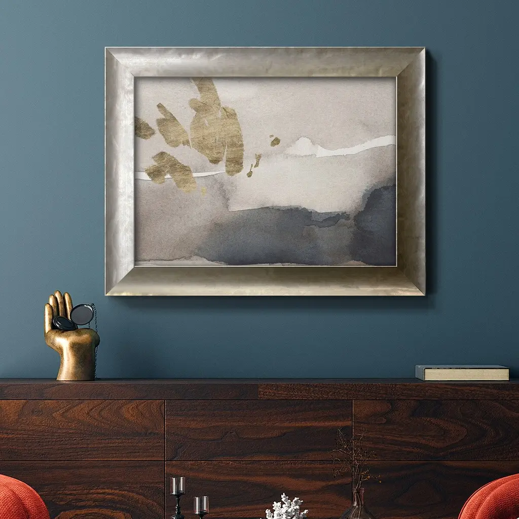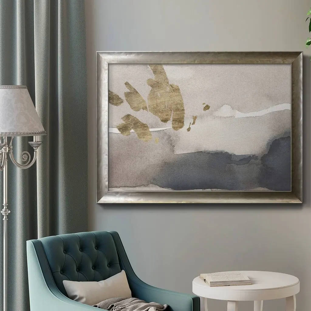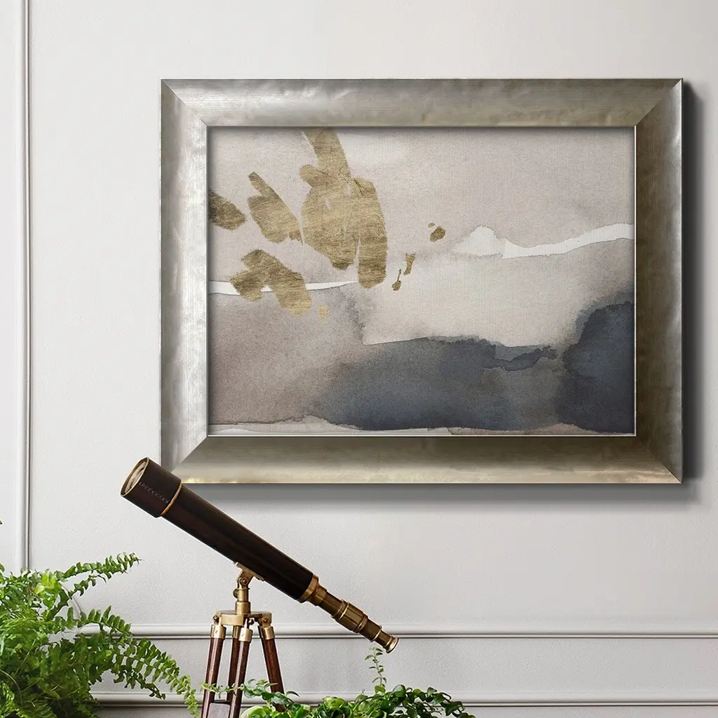 Watercolor with Gold III Premium Framed Canvas- Ready to Hang A Premium Framed Canvas created to last. Framed in distressed wood and available in an array of sizes and colors Featuring a beveled a solid wood stretcher bar, each piece comes ready to hand 3 SIZES AVAILABLE 16''X20'' - Overall Size 18'X27'' - Overall Size 24''x36'' - Overall Size Each piece is made to order. Each piece comes with hanging hardware. Made in the USA Ready to Hang Giclee Paper Print Acrylic Glass Beveled Matt Board