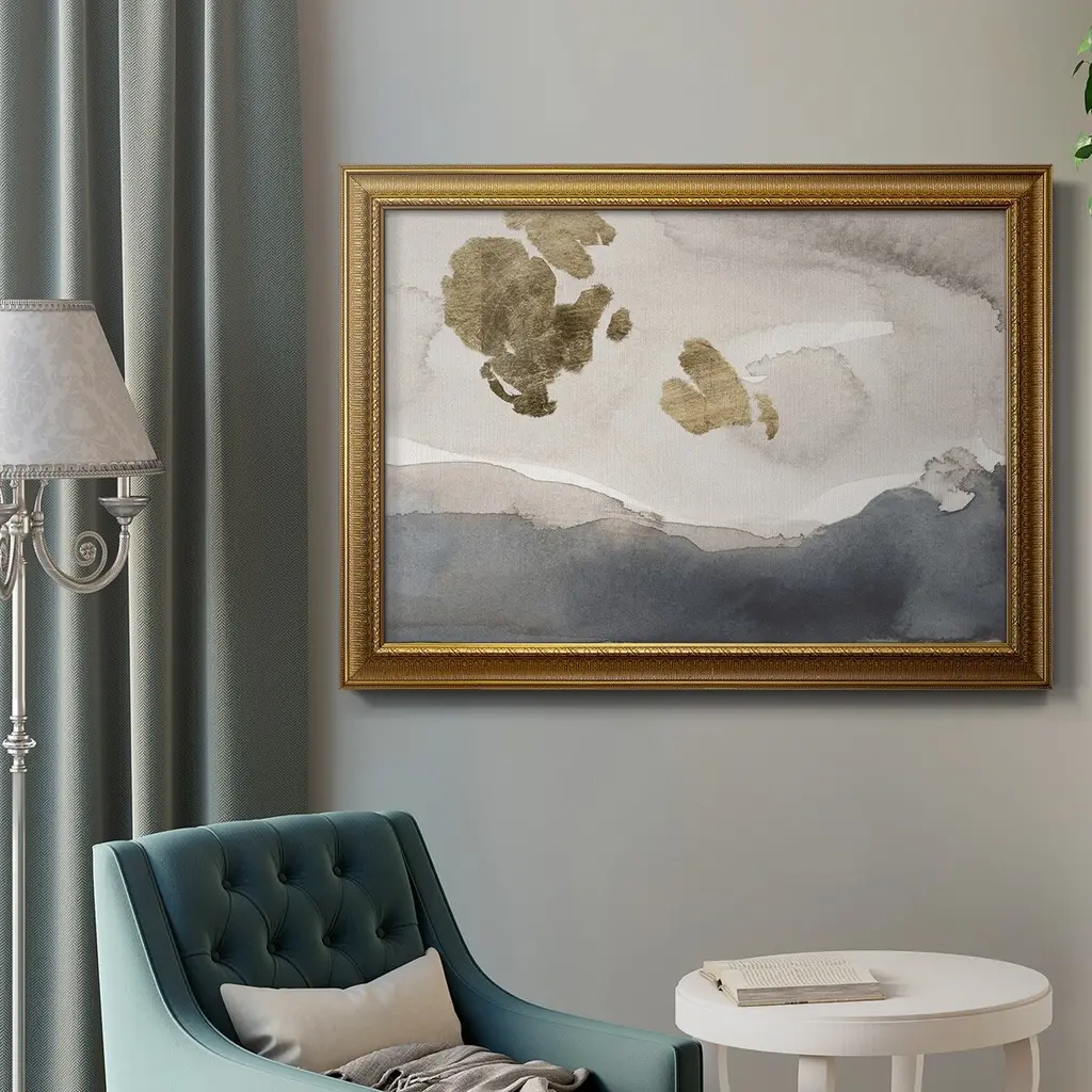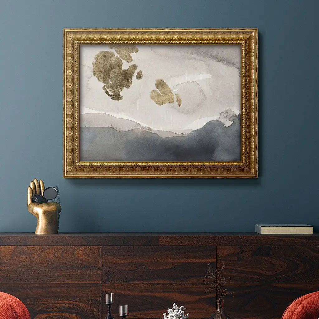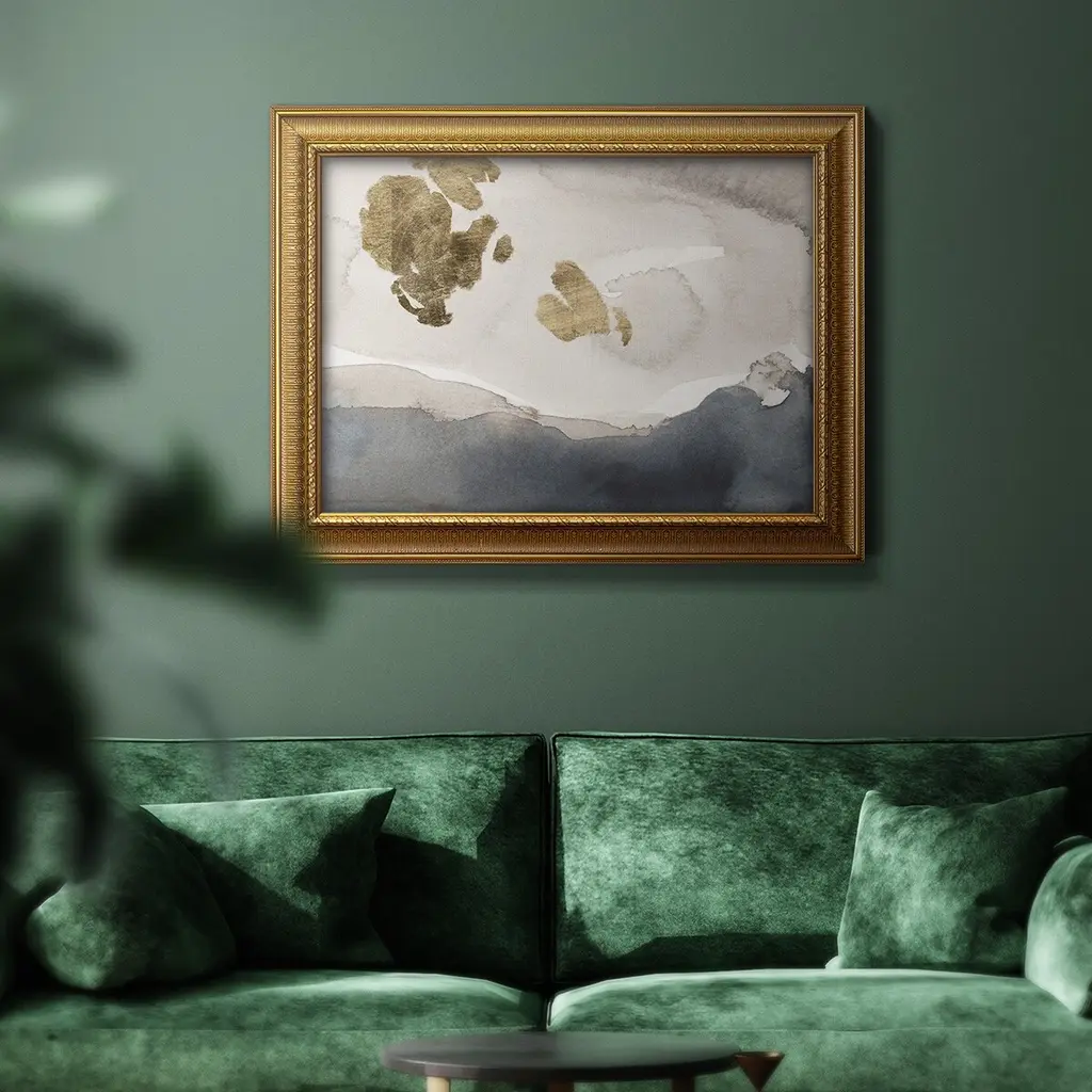 Watercolor with Gold IV Premium Framed Canvas- Ready to Hang A Premium Framed Canvas created to last. Framed in distressed wood and available in an array of sizes and colors Featuring a beveled a solid wood stretcher bar, each piece comes ready to hand 3 SIZES AVAILABLE 16''X20'' - Overall Size 18'X27'' - Overall Size 24''x36'' - Overall Size Each piece is made to order. Each piece comes with hanging hardware. Made in the USA Ready to Hang Giclee Paper Print Acrylic Glass Beveled Matt Board