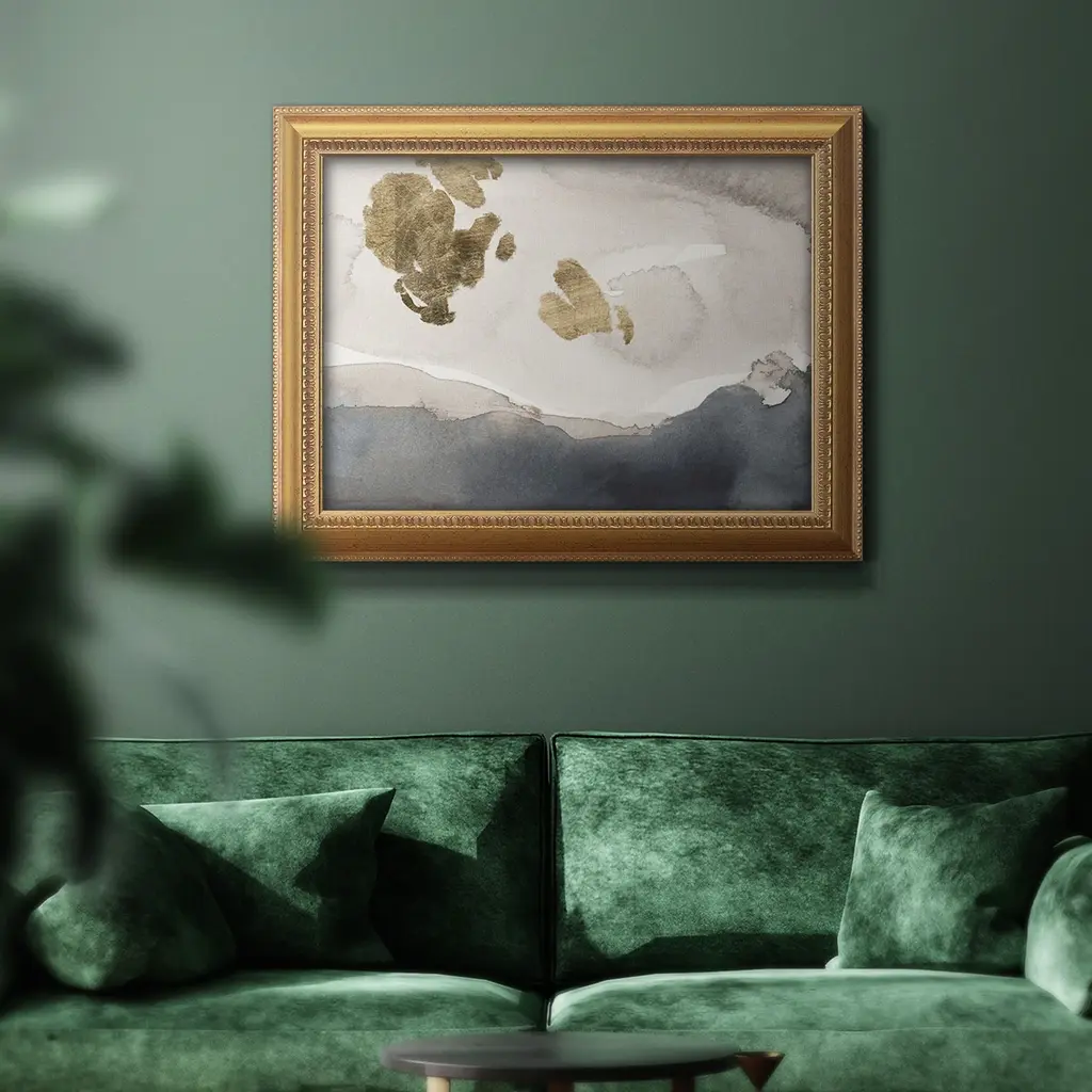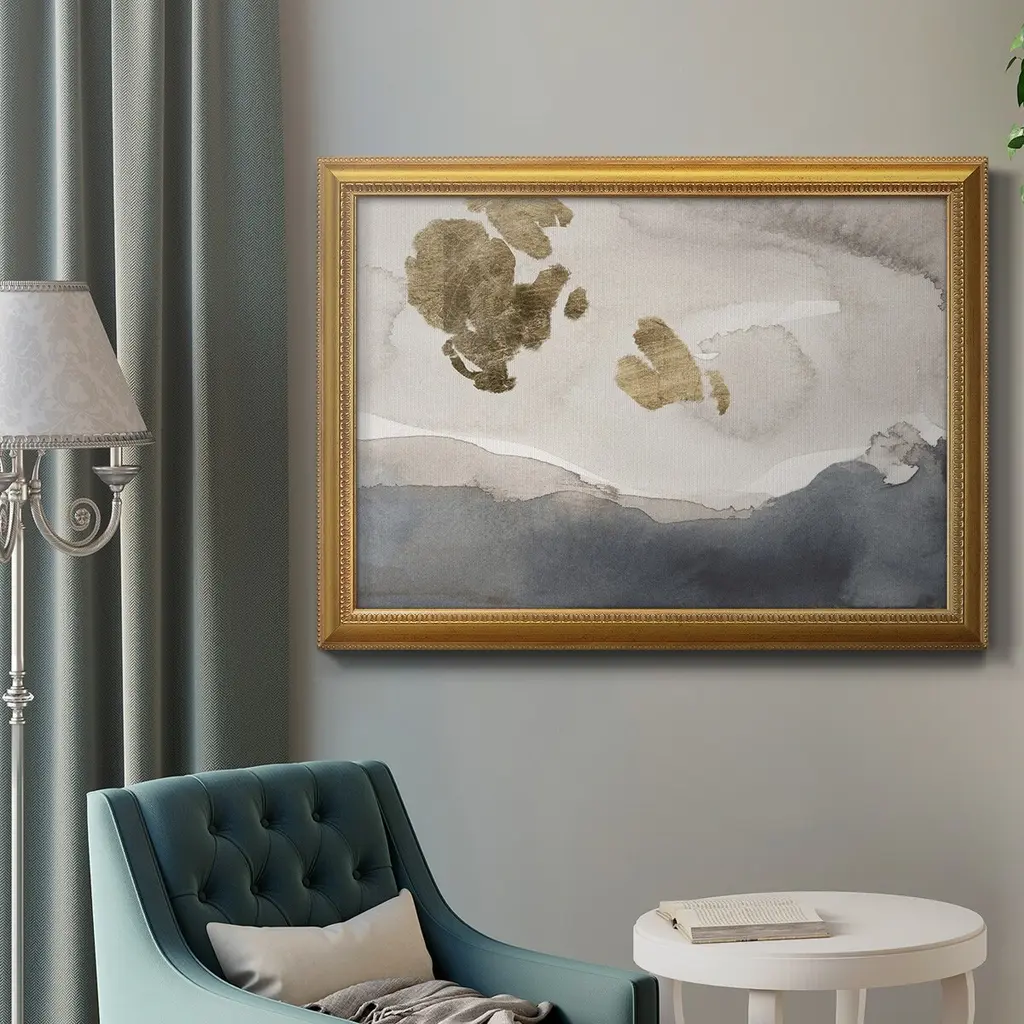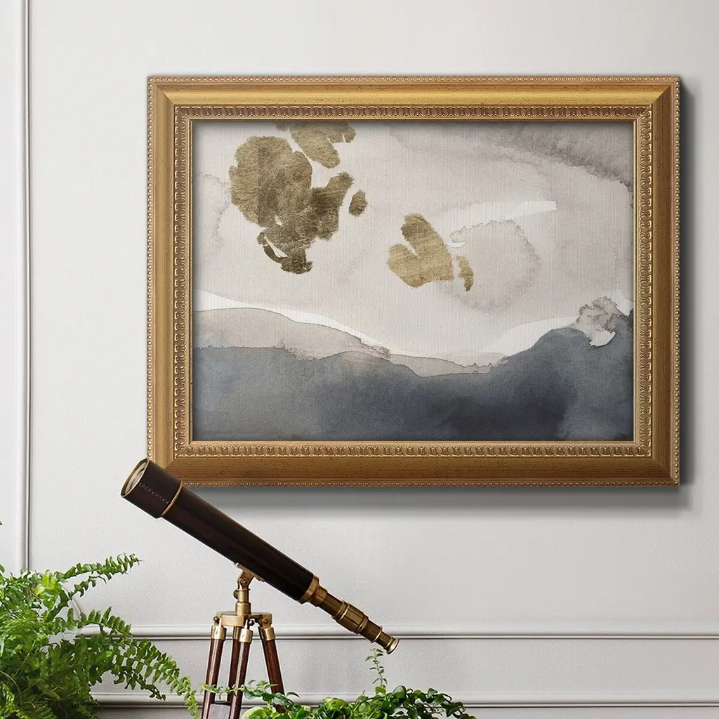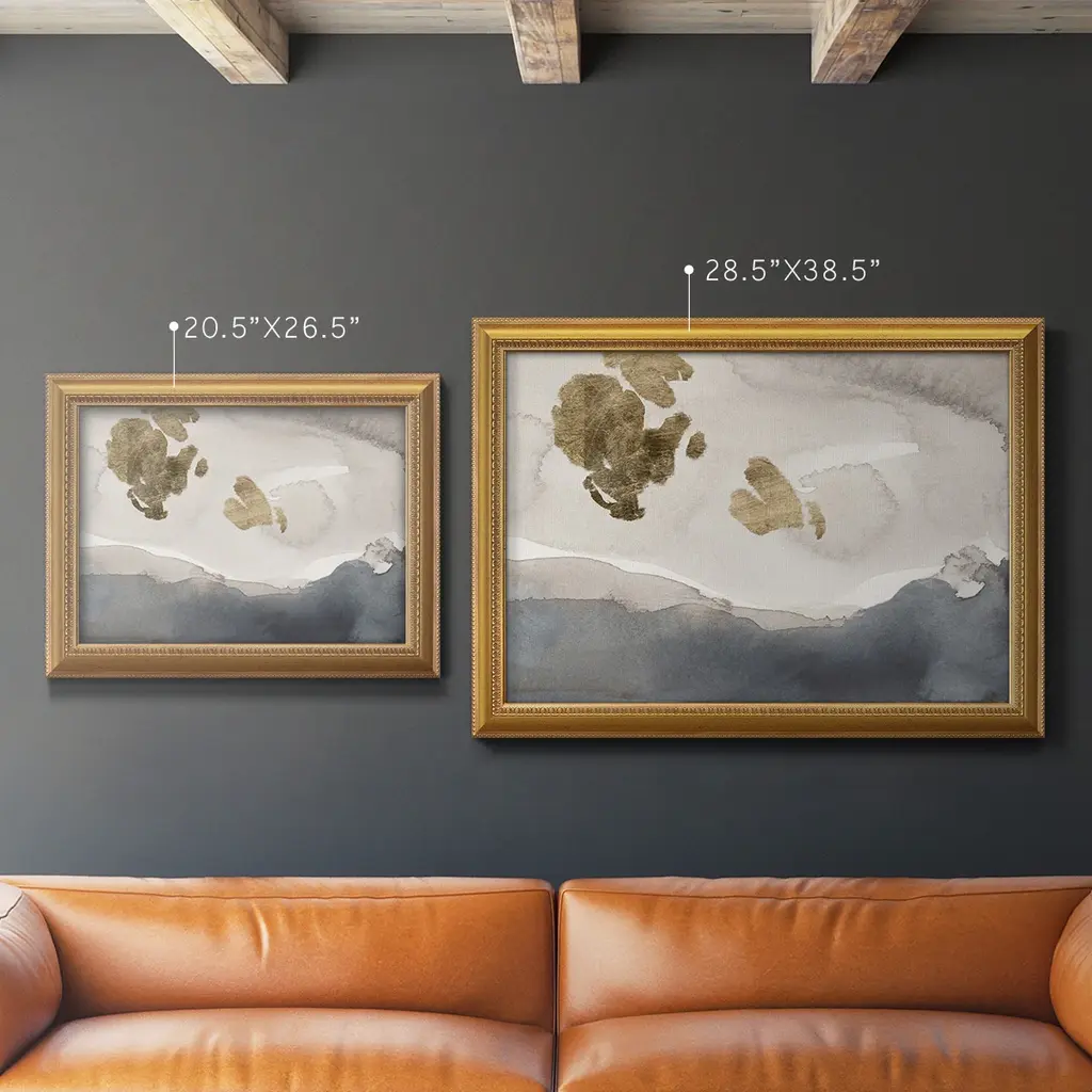 Watercolor with Gold IV Premium Framed Canvas- Ready to Hang A Premium Framed Canvas created to last. Framed in distressed wood and available in an array of sizes and colors Featuring a beveled a solid wood stretcher bar, each piece comes ready to hand 3 SIZES AVAILABLE 16''X20'' - Overall Size 18'X27'' - Overall Size 24''x36'' - Overall Size Each piece is made to order. Each piece comes with hanging hardware. Made in the USA Ready to Hang Giclee Paper Print Acrylic Glass Beveled Matt Board
