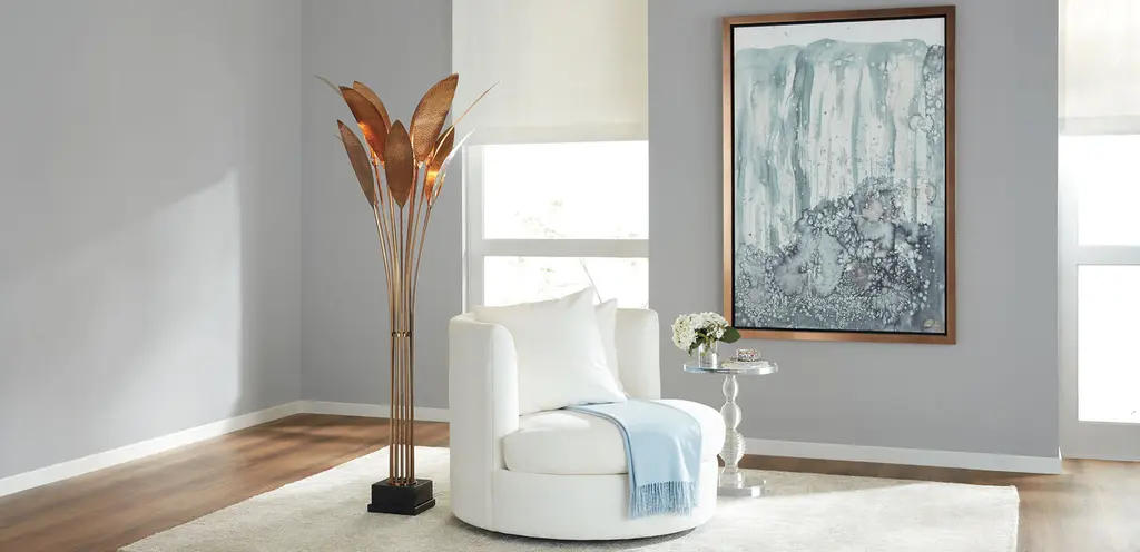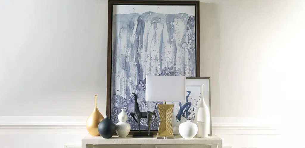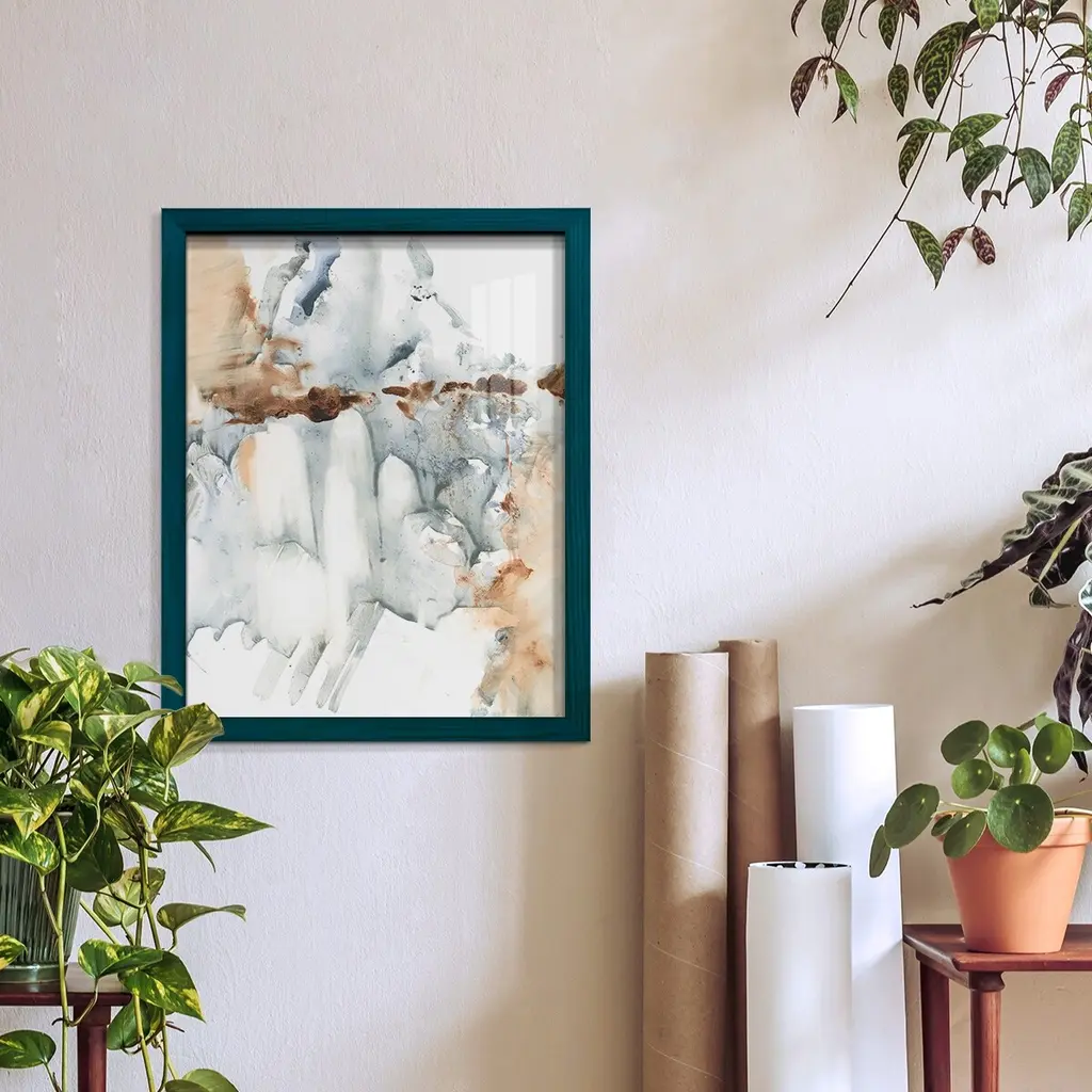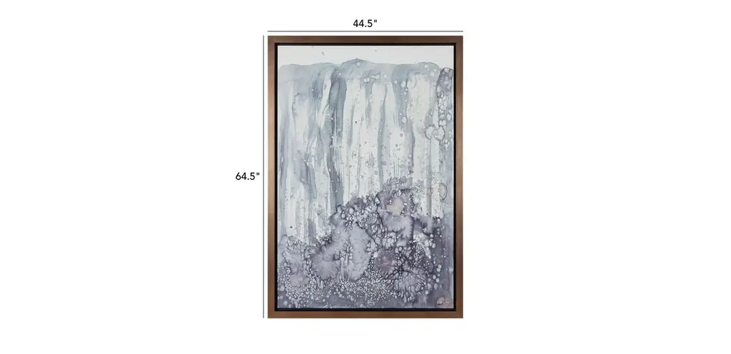 Artist Allison Svoboda is drawn to, and inspired by, the organic forms and patterns found in nature. Her Waterfall painting evokes a sense of wonder at a waterfall's powerful movement. Displayed in a simple bronze float frame, this waterfall modern painting, re-created as a waterfall print in giclée on stretched canvas, is a compelling statement piece.
