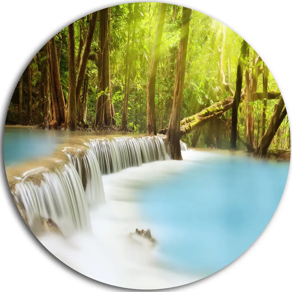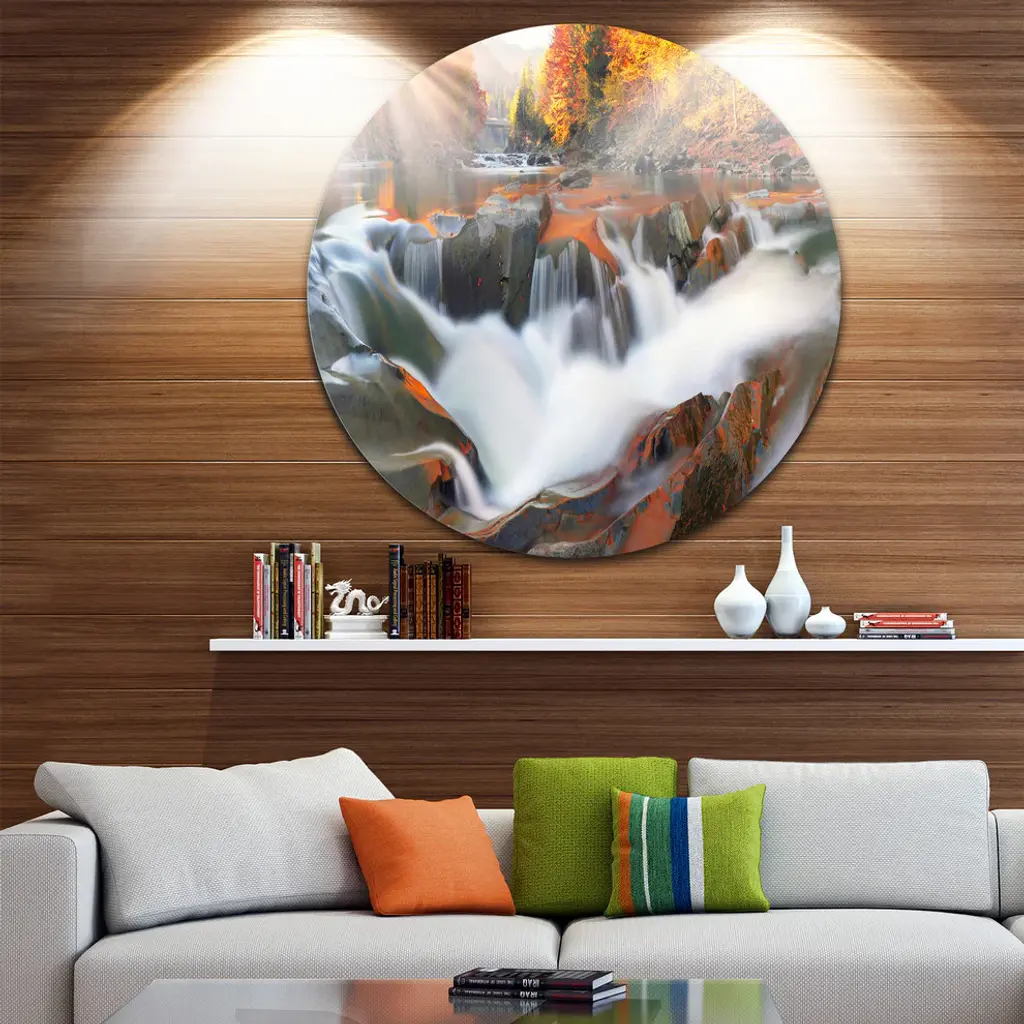 Bring Contemporary Abstraction to your home with this large Circle Metal wall art. This Waterfall Probiy in Prut River Metal Artwork makes it the focal point of any room or office. - White Gloss Coating ensures colors are extra vibrant with light reflection.- Aluminum grade Sheet Metal with 1 inch mounting frame on the back giving the illusion that the artwork is floating on the wall..- Mounting Brackets are included along with instructions.- High Quality Digital images are created directly into a glossy aluminum panel producing a stunning and captivating print into the glossy finish of the metal.- Water, Fire and Scratch resistant HD Aluminum panels.- Looks better than any photo paper and guaranteed to last at least 20 years- Easy to clean with a microfiber cloth. Colors are far superior to regular Canvas Art. - Easy to Hang