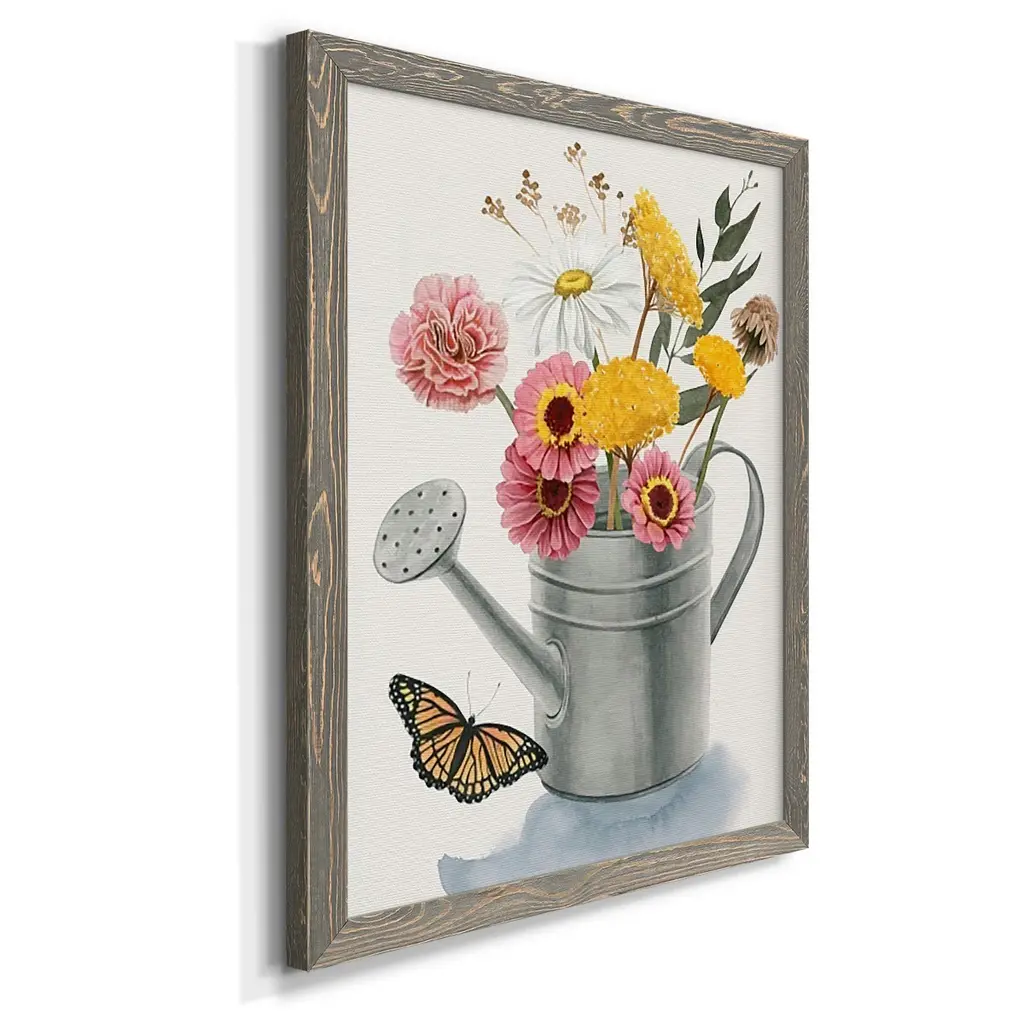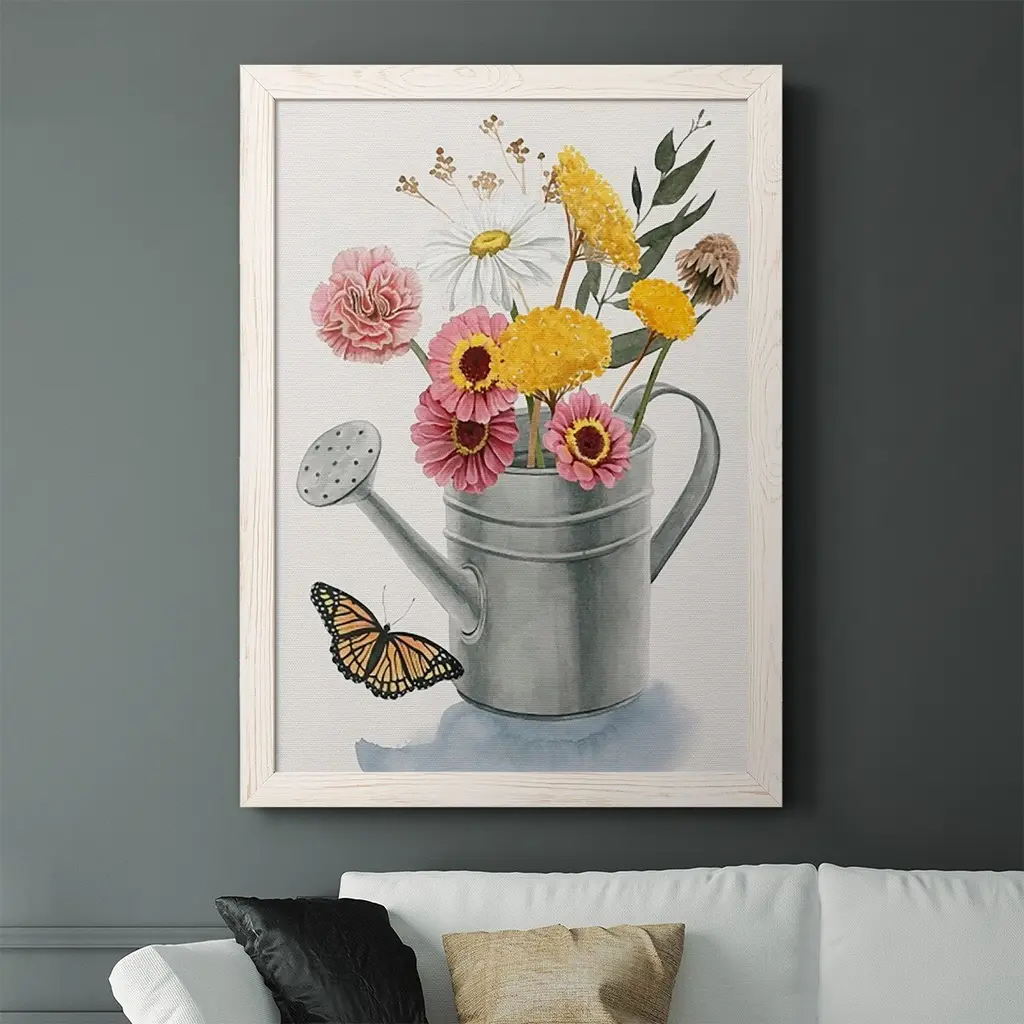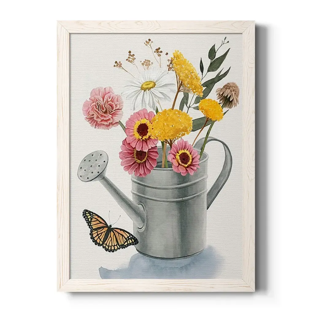 Watering Can Bouquet I-Premium Framed Canvas - Ready To Hang - 27.5x37.5 - Walnut