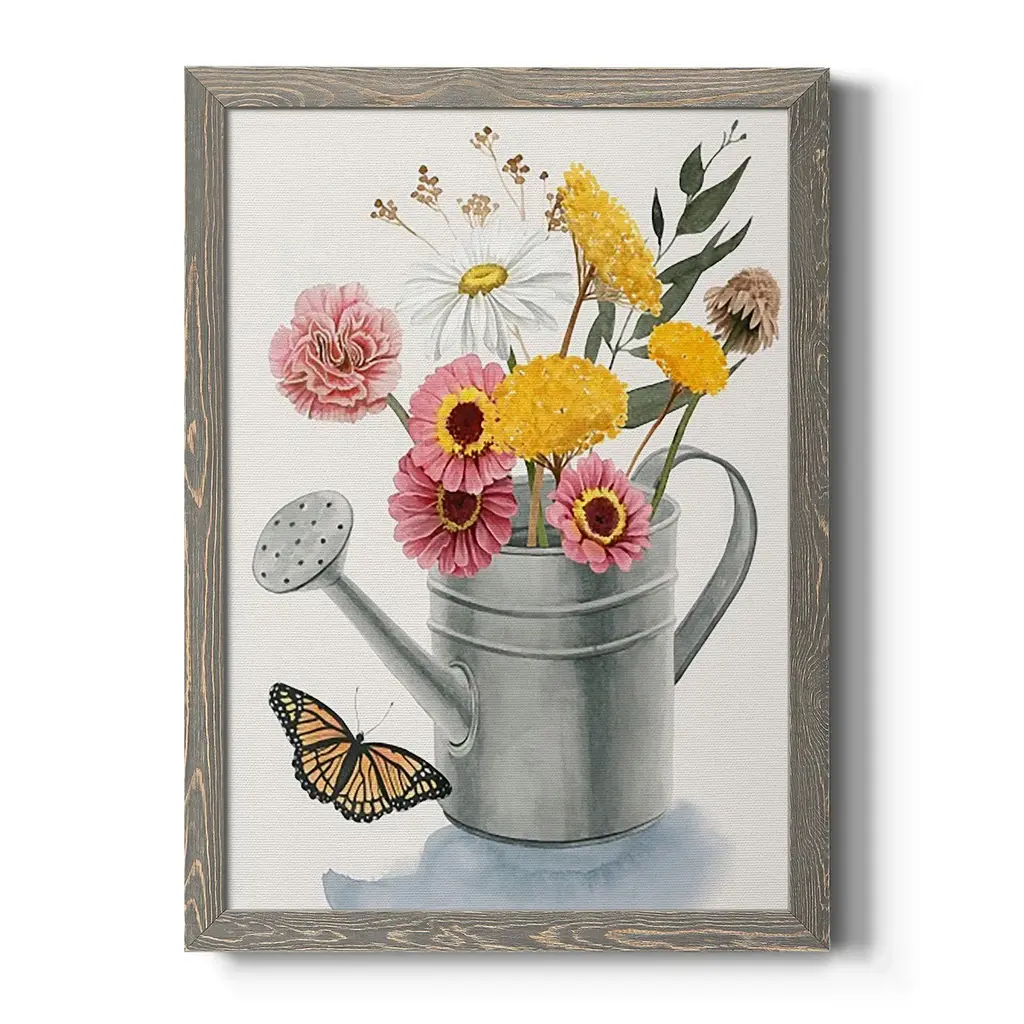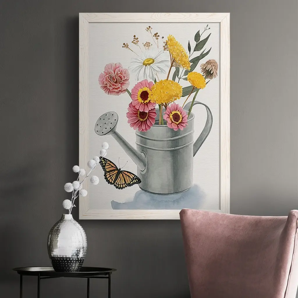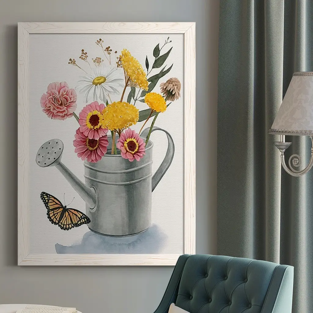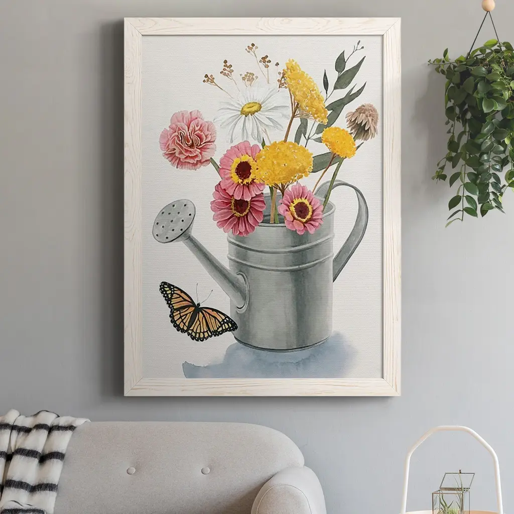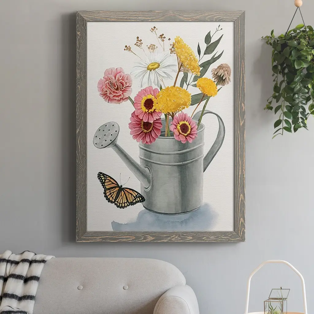Watering Can Bouquet I-Premium Framed Canvas - Ready To Hang - 31.5x43.5 - Black