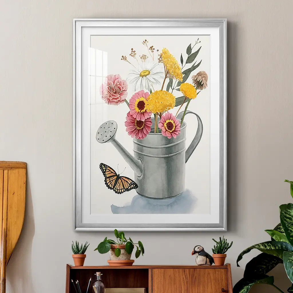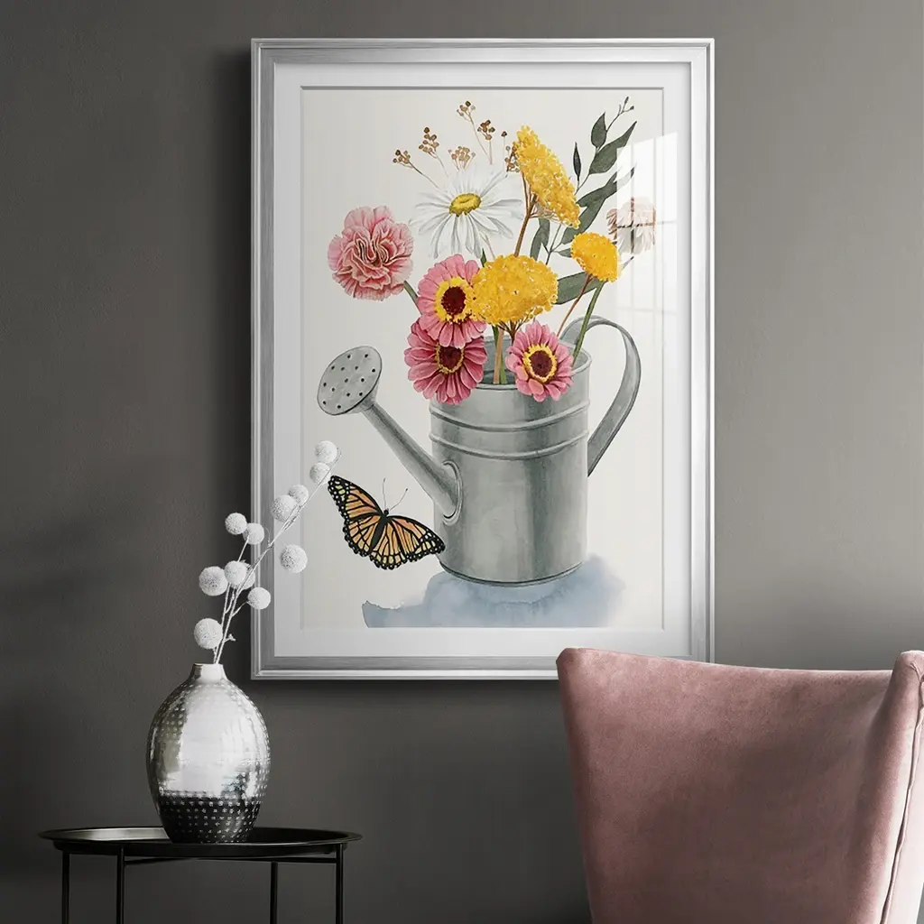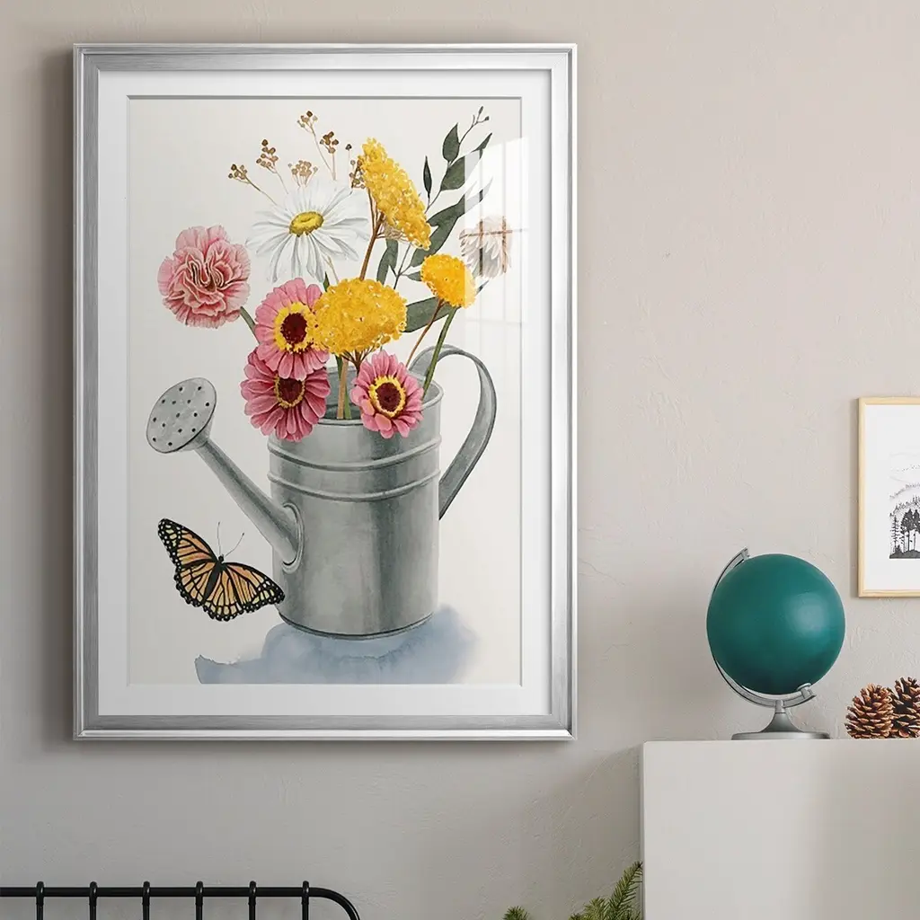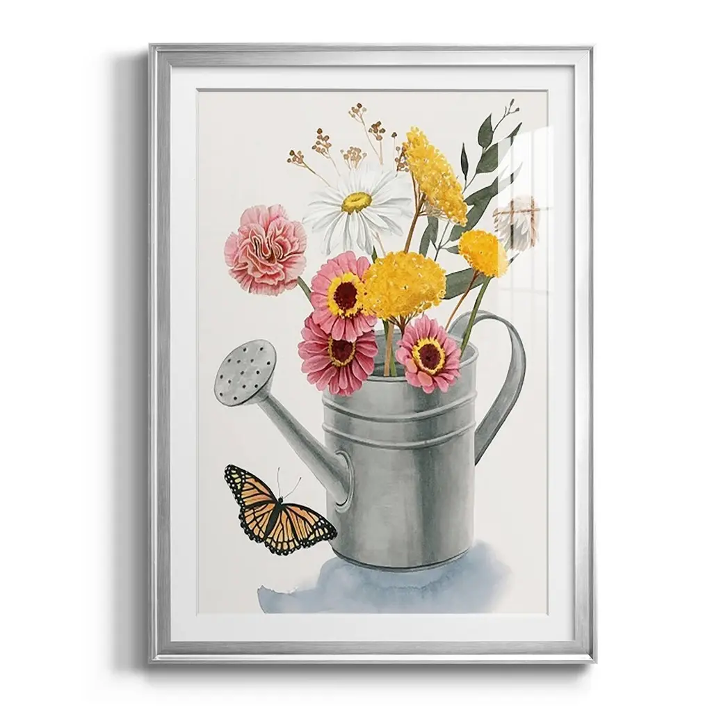 Watering Can Bouquet I Premium Framed Print - Ready To Hang - 22.5x30.5 - Silver