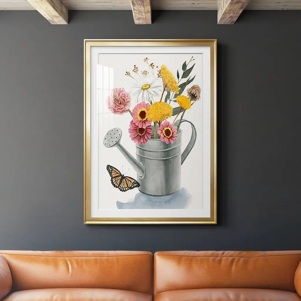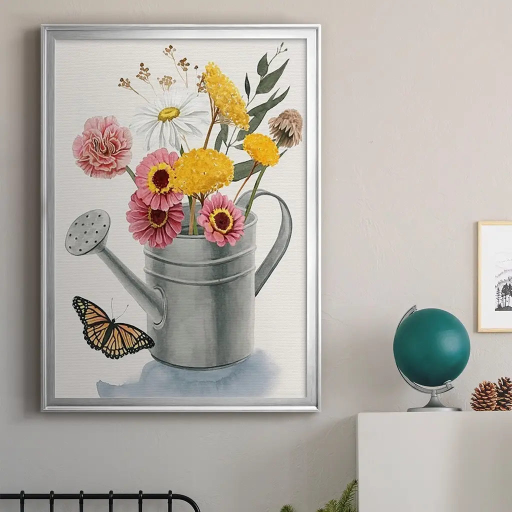 Watering Can Bouquet I Premium Framed Print - Ready To Hang - 30.5x42.5 - Black