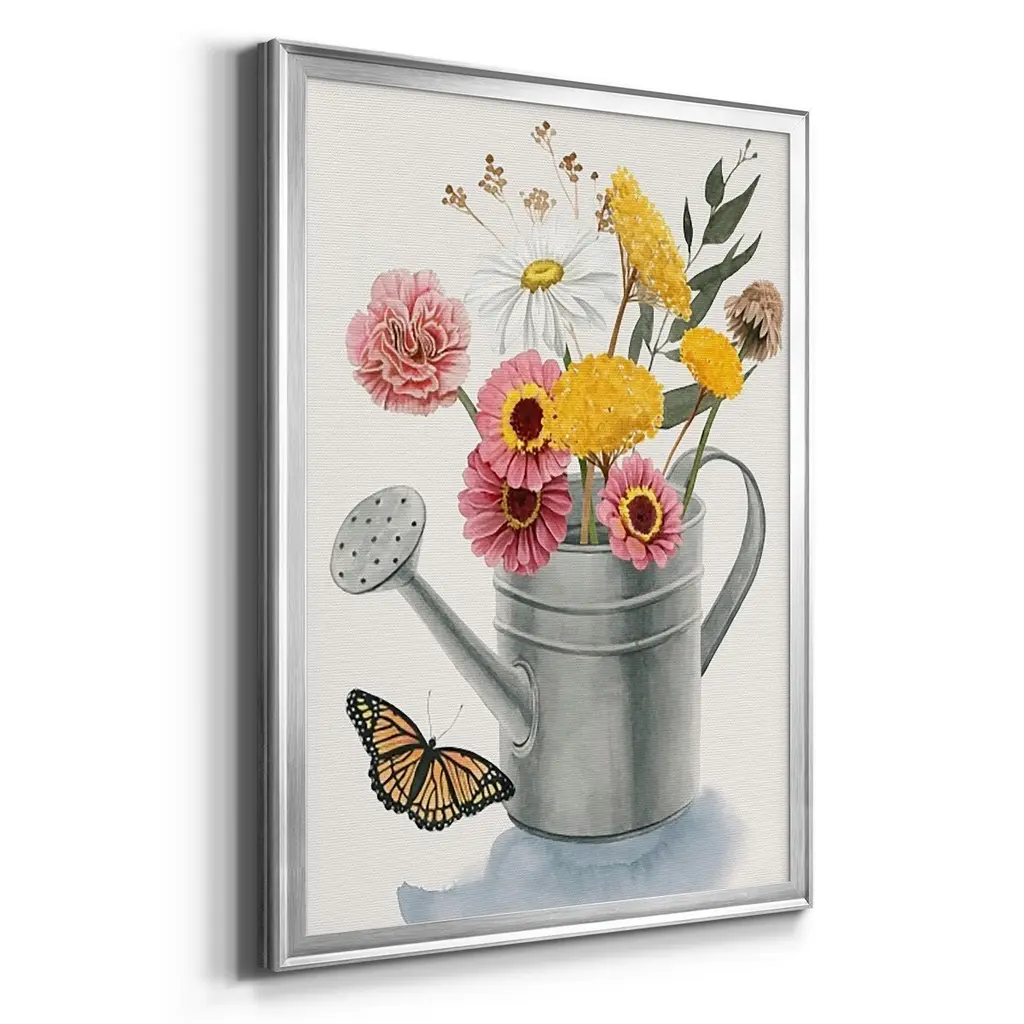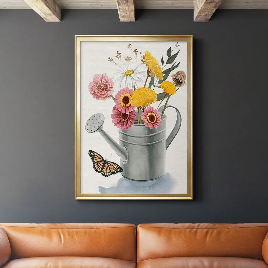 Watering Can Bouquet I Premium Framed Print - Ready to Hang A Premium Framed Print created to last. Framed in distressed wood and available in an array of sizes and colors Featuring a beveled a solid wood stretcher bar, each piece comes ready to hand 4 SIZES AVAILABLE 30.5''X42.5'' - Overall Size 26.5'X36.5'' - Overall Size 22.5''x30.5'' - Overall Size 18.5''x24.5'' - Overall Size Each piece is made to order. Each piece comes with hanging hardware. Made in the USA Ready to Hang
