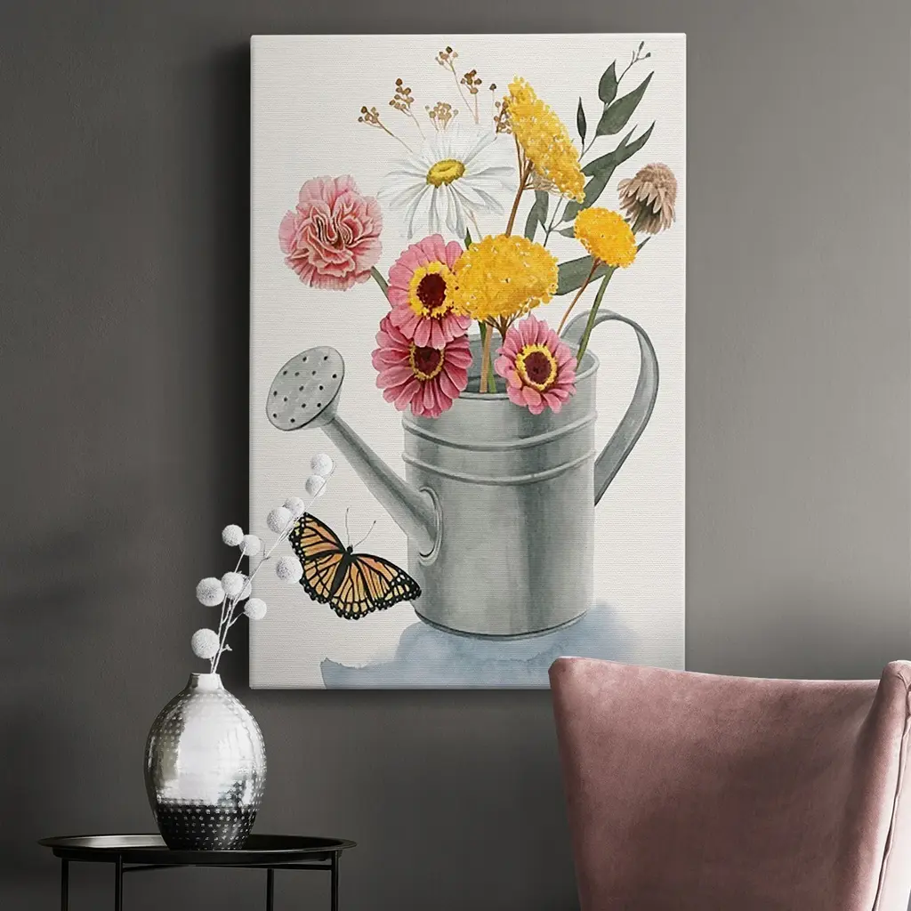 Watering Can Bouquet I Premium Gallery Wrapped Canvas - Ready To Hang - 24x36