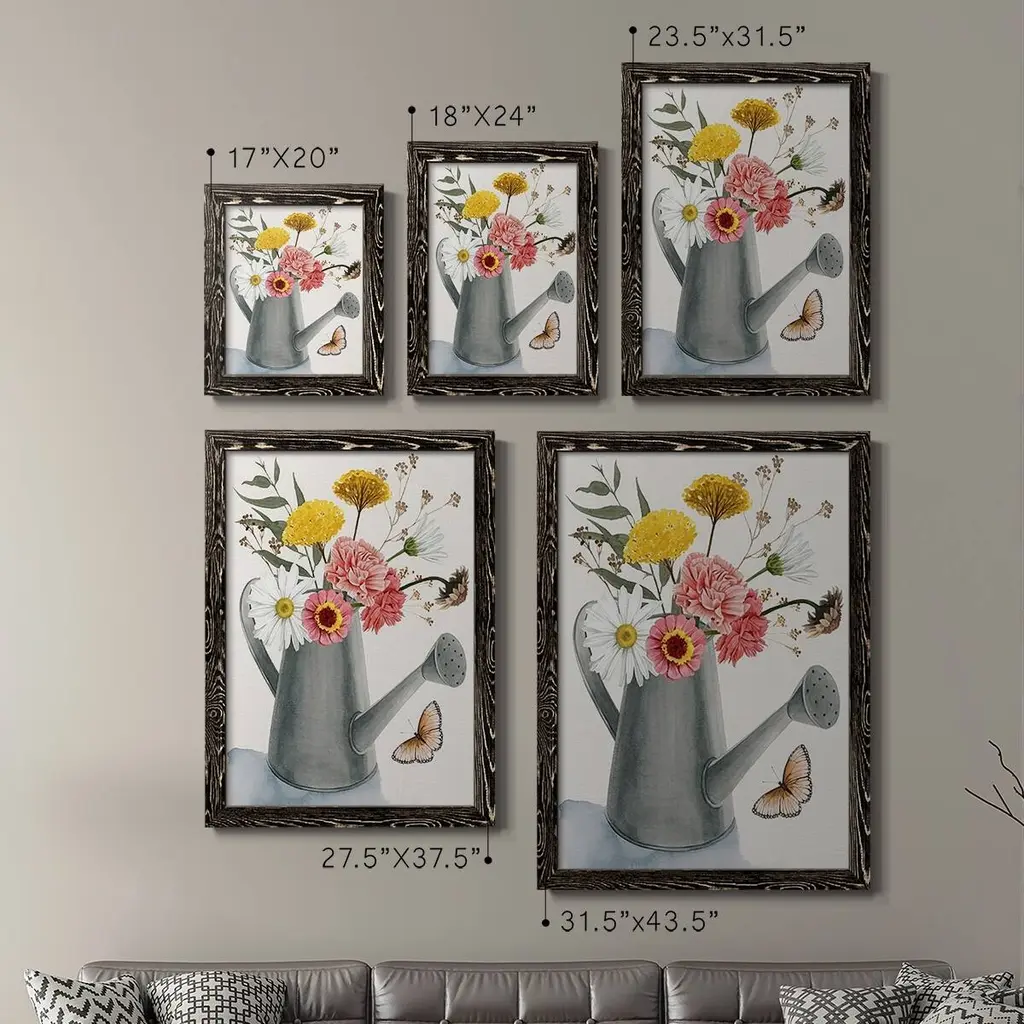 Watering Can Bouquet Ii-Premium Framed Canvas - Ready To Hang - 27.5x37.5 - Grey