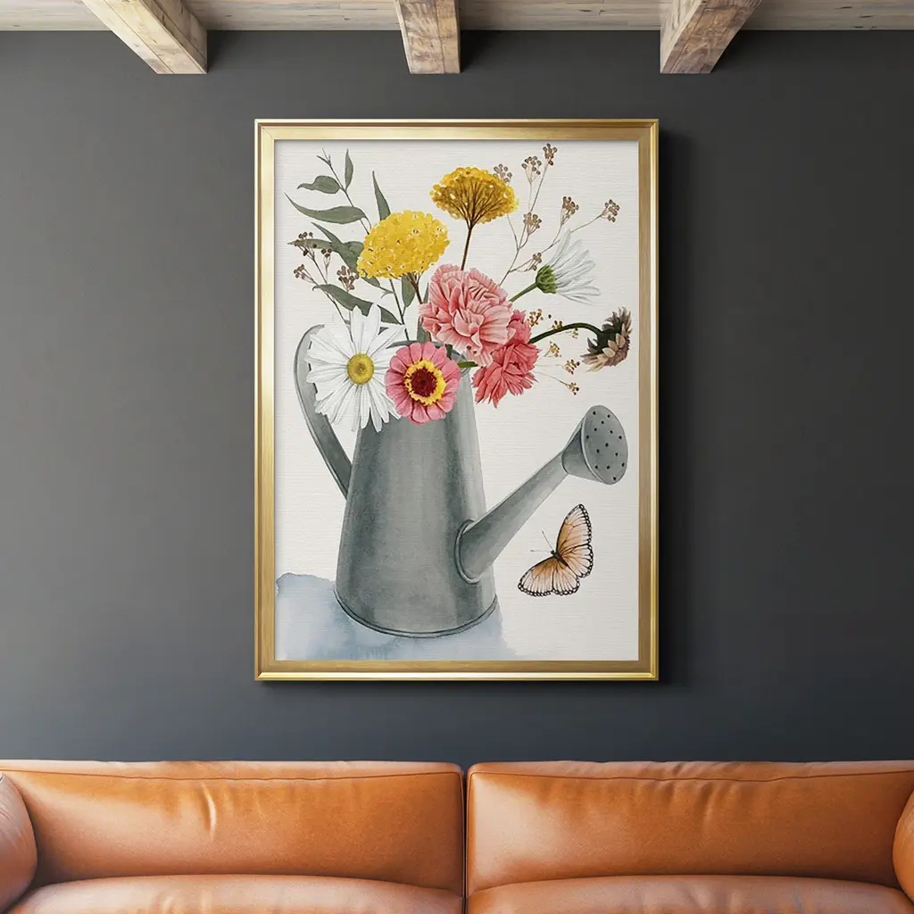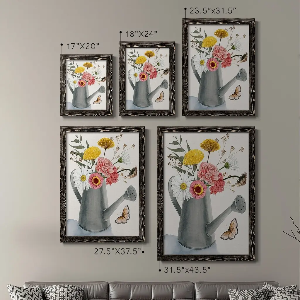 Watering Can Bouquet Ii-Premium Framed Canvas - Ready To Hang - 27.5x37.5 - Maple