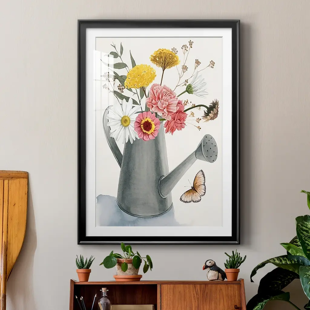 Watering Can Bouquet Ii Premium Framed Print - Ready To Hang - 26.5x36.5 - Black