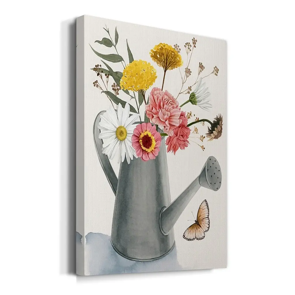 Watering Can Bouquet II Premium Gallery Wrapped Canvas - Ready to Hang A premium hand stretched gallery wrapped canvas print created to last. Featuring a beveled a solid wood stretcher bar, each piece comes ready to hand 6 SIZES AVAILABLE 8''X12'' - Overall Size 12''X18'' - Overall Size 18''X27'' - Overall Size 24''x36'' - Overall Size 32''x48'' - Overall Size 40''x60'' - Overall Size Each piece is made to order. Built to Last Each piece comes ready to hang Solid wood stretcher Fade and Water resistant Made domestically