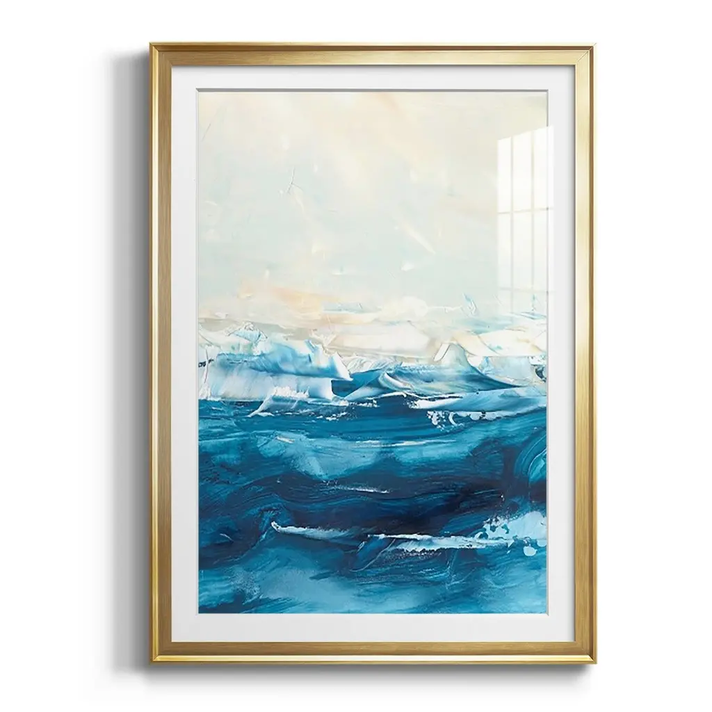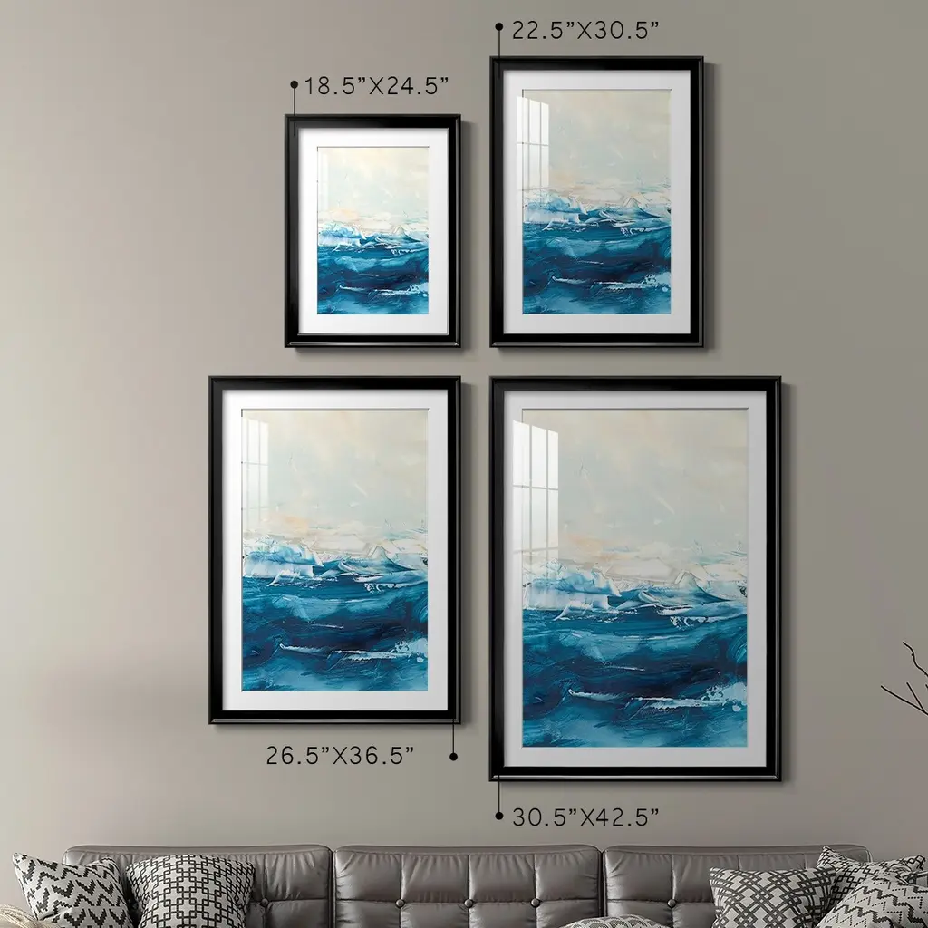 Wave after Wave II Premium Framed Print - Ready to Hang A Premium Framed Print created to last. Framed in distressed wood and available in an array of sizes and colors Featuring a beveled a solid wood stretcher bar, each piece comes ready to hand 4 SIZES AVAILABLE 30.5''X42.5'' - Overall Size 26.5'X36.5'' - Overall Size 22.5''x30.5'' - Overall Size 18.5''x24.5'' - Overall Size Each piece is made to order. Each piece comes with hanging hardware. Made in the USA Ready to Hang Giclee Paper Print Acrylic Glass Beveled Matt Board