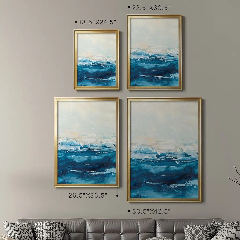 Wave after Wave II Premium Framed Print - Ready to Hang A Premium Framed Print created to last. Framed in distressed wood and available in an array of sizes and colors Featuring a beveled a solid wood stretcher bar, each piece comes ready to hand 4 SIZES AVAILABLE 30.5''X42.5'' - Overall Size 26.5'X36.5'' - Overall Size 22.5''x30.5'' - Overall Size 18.5''x24.5'' - Overall Size Each piece is made to order. Each piece comes with hanging hardware. Made in the USA Ready to Hang